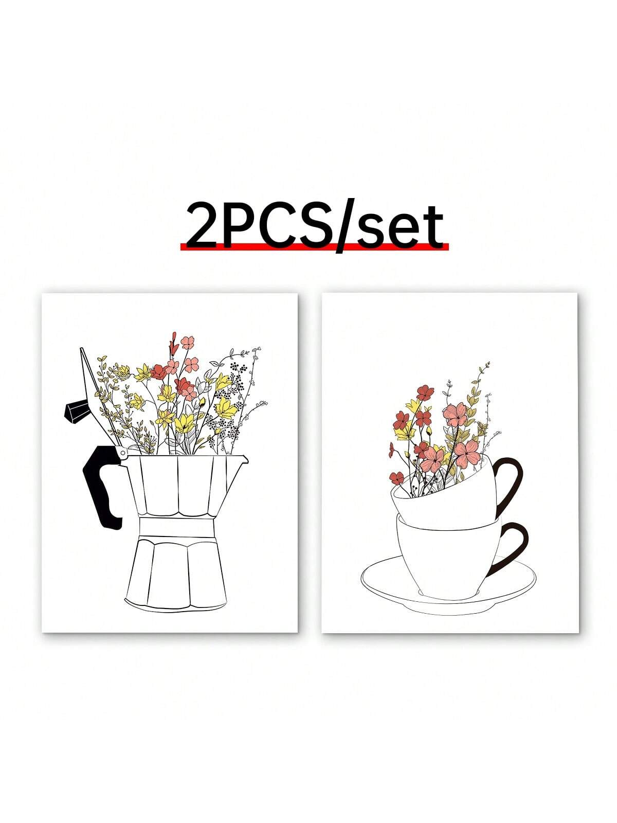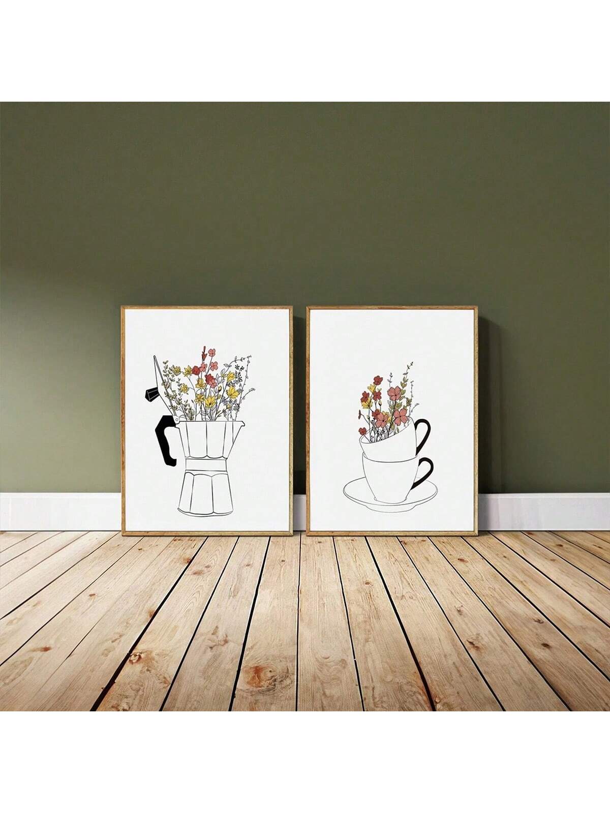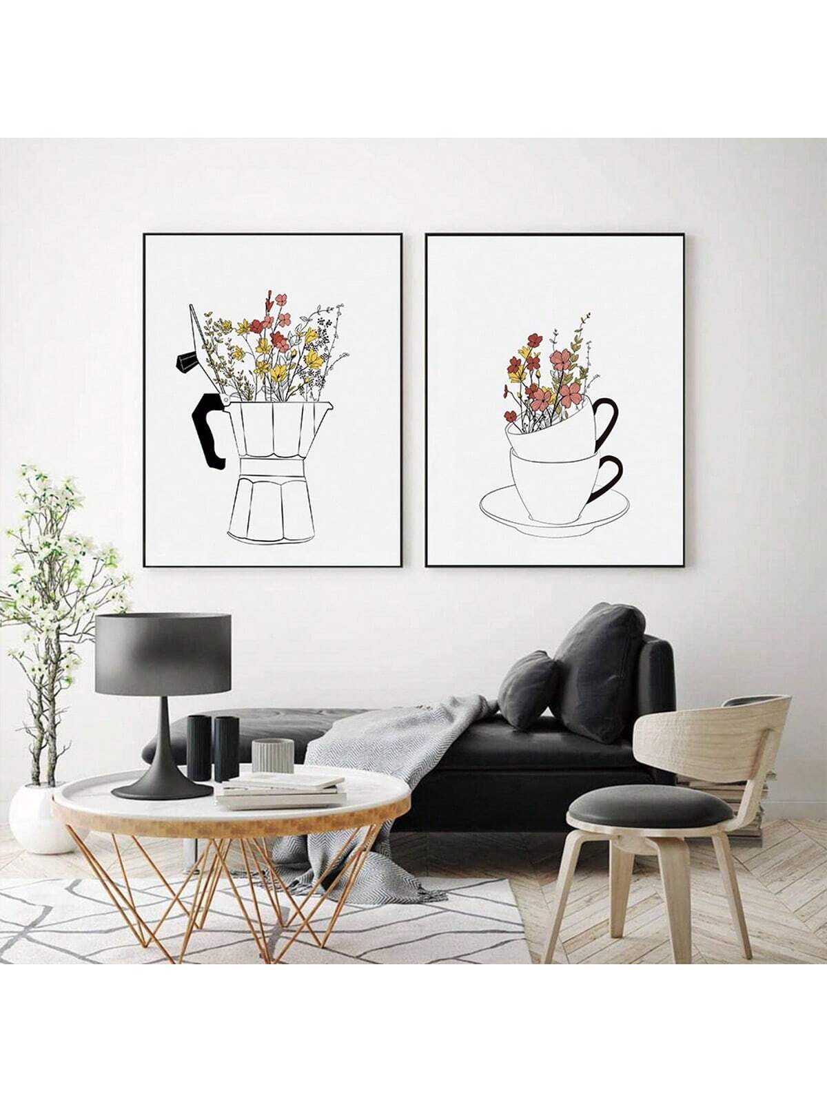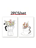 Chic Nordic Canvas Art Set: Coffee Cup & Floral Prints for Stylish Home Decor
