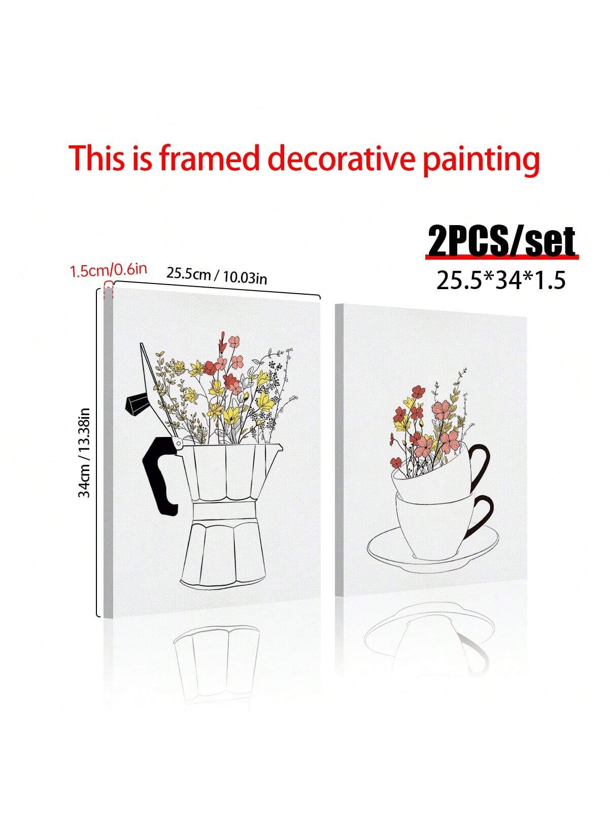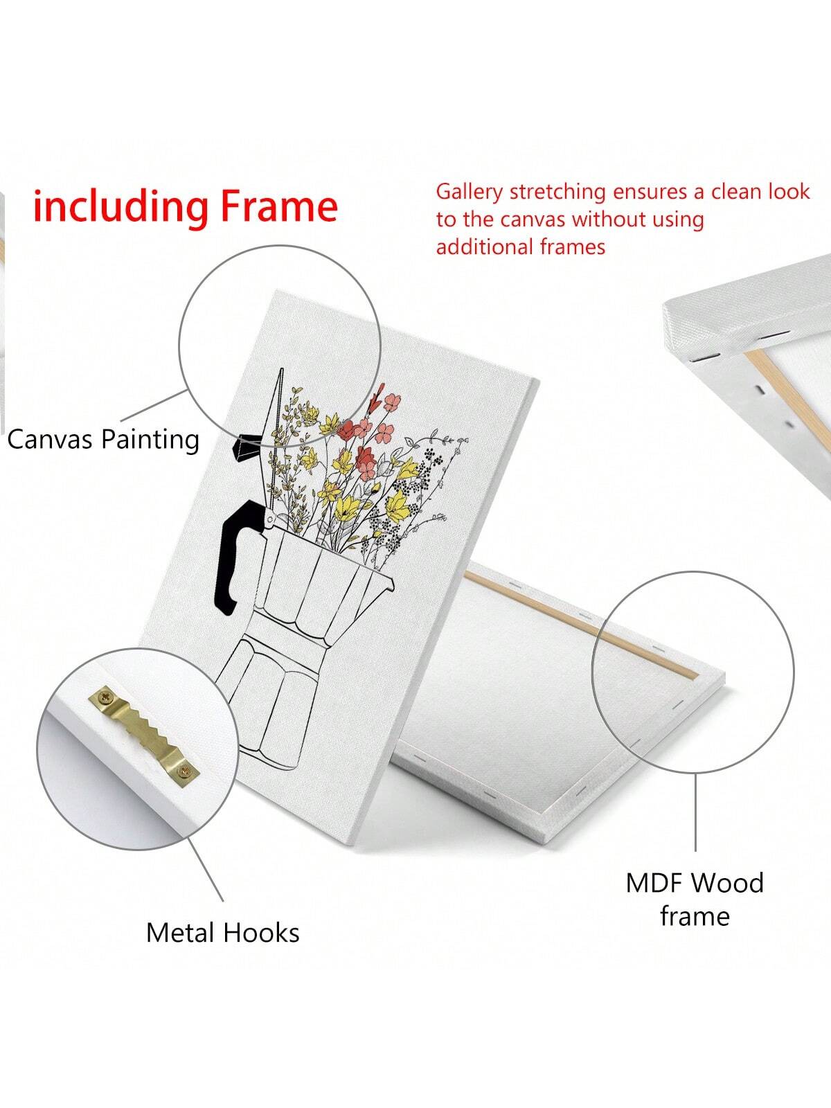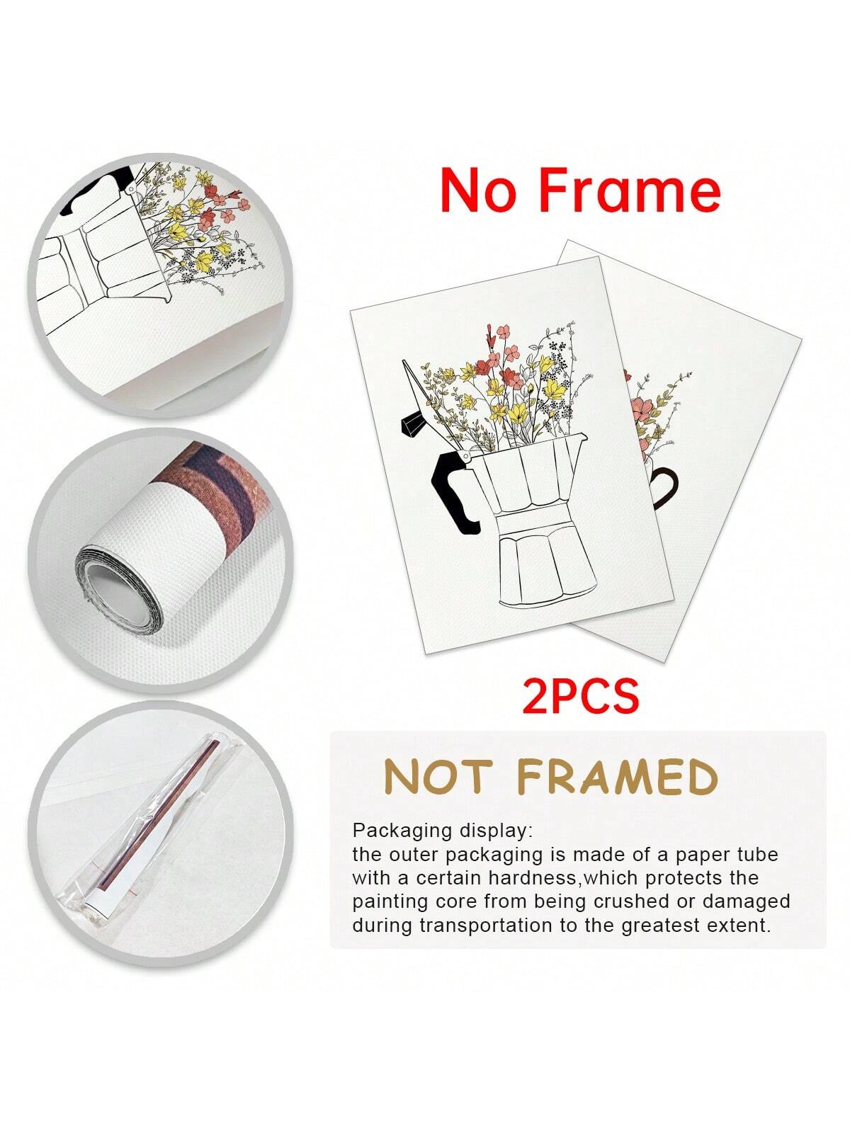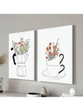 Chic Nordic Canvas Art Set: Coffee Cup & Floral Prints for Stylish Home Decor