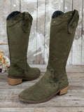 Elevate your style this fall and winter with our Chic Olive Green Studded Knee-High Western Cowboy Boots. Made with high-quality materials, these boots offer both comfort and fashion. The studded design adds a unique touch to your outfit, while the knee-high length keeps you warm. Perfect for any stylish look.