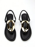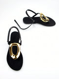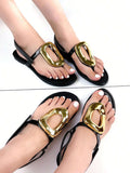 Chic Orange Sardine Fabric Flat Sandals with Gold Metal Buckle