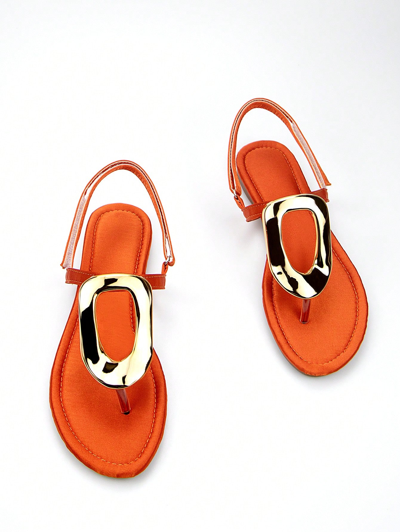 Elevate your style with our Chic Orange Sardine Fabric Flat Sandals. Crafted with a gold metal buckle, these sandals add a touch of elegance to any outfit. The comfortable design and durable sardine fabric make them the perfect choice for both casual and formal occasions.