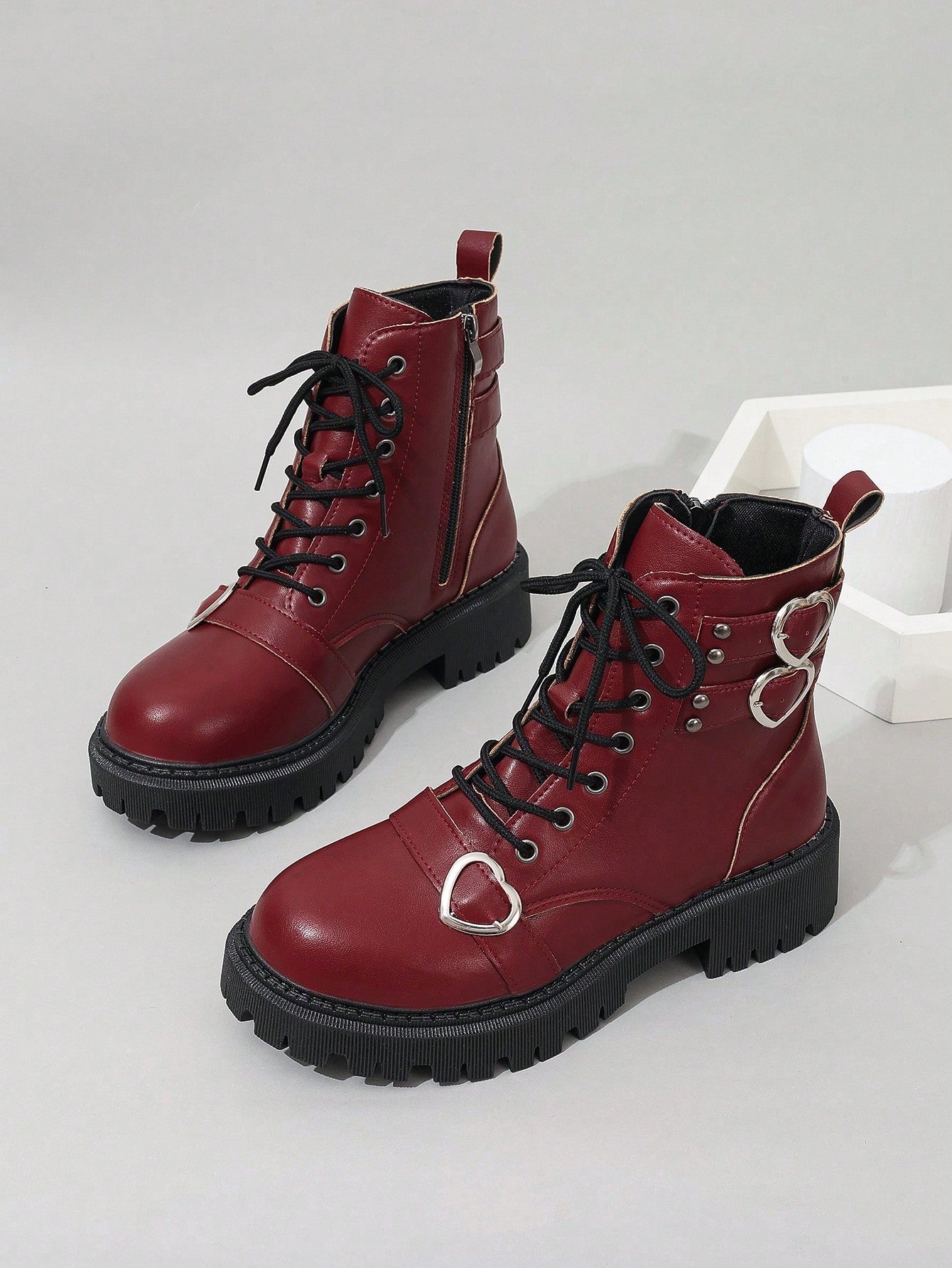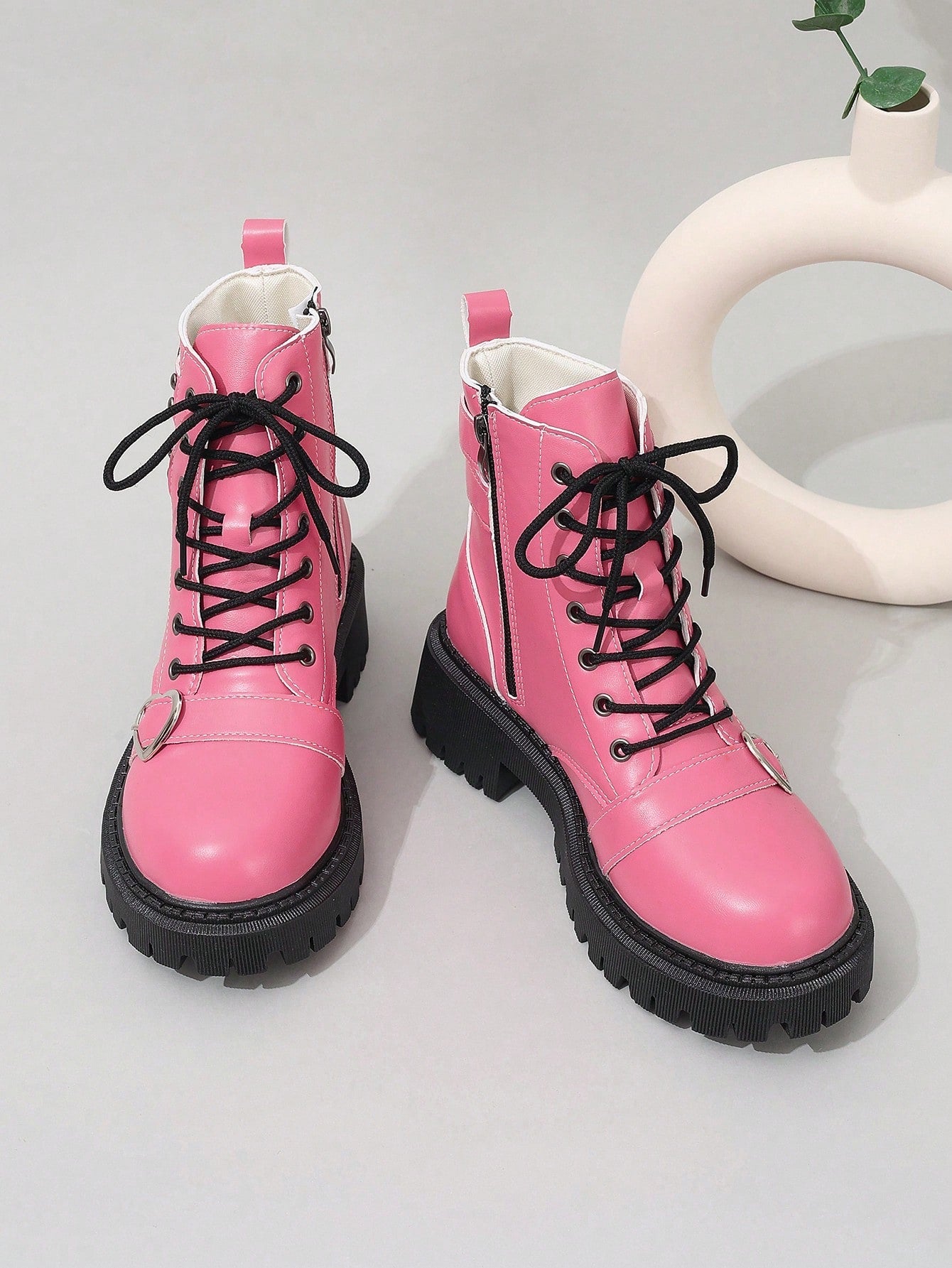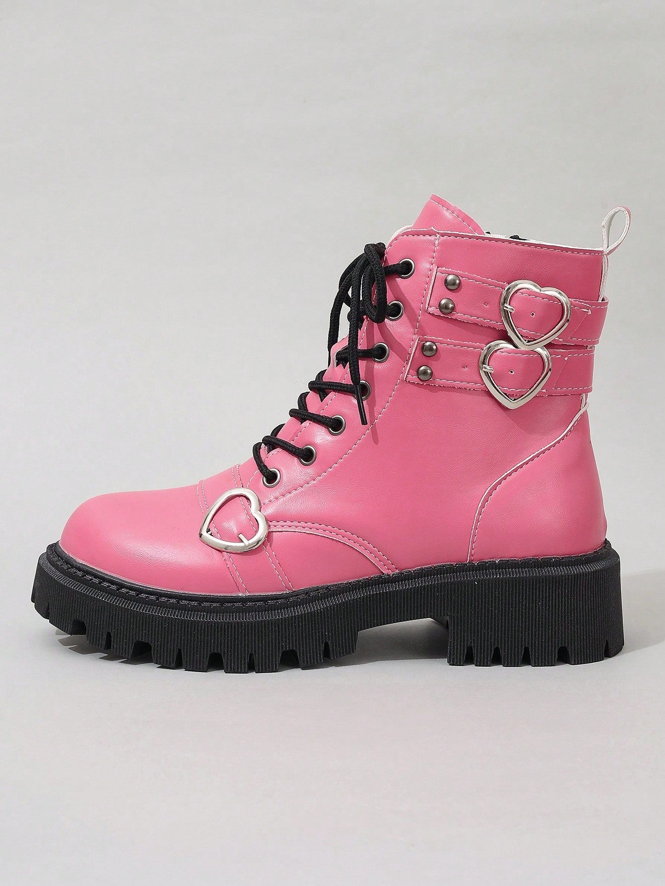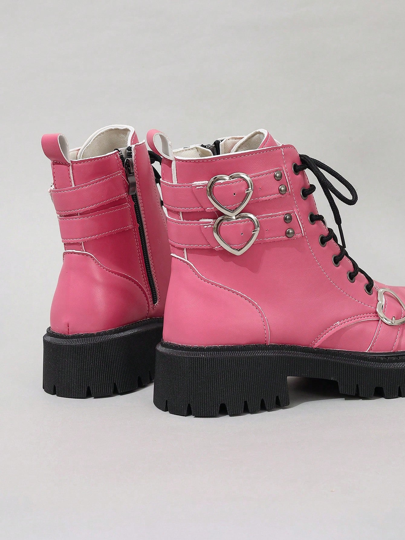 Chic Pink Grunge Punk Studded Heart Lolita Boots for Trendy Girls – Perfect for Spring & Autumn