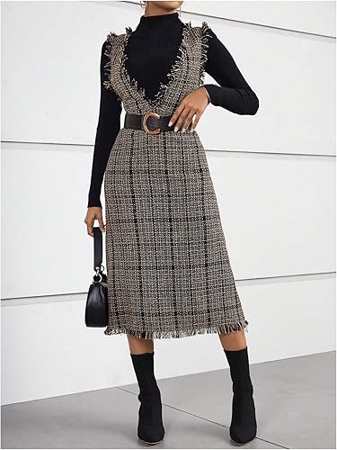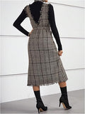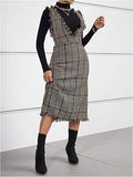 Chic Plaid Print Overall Dress with Raw Trim - Effortless Style for Every Occasion