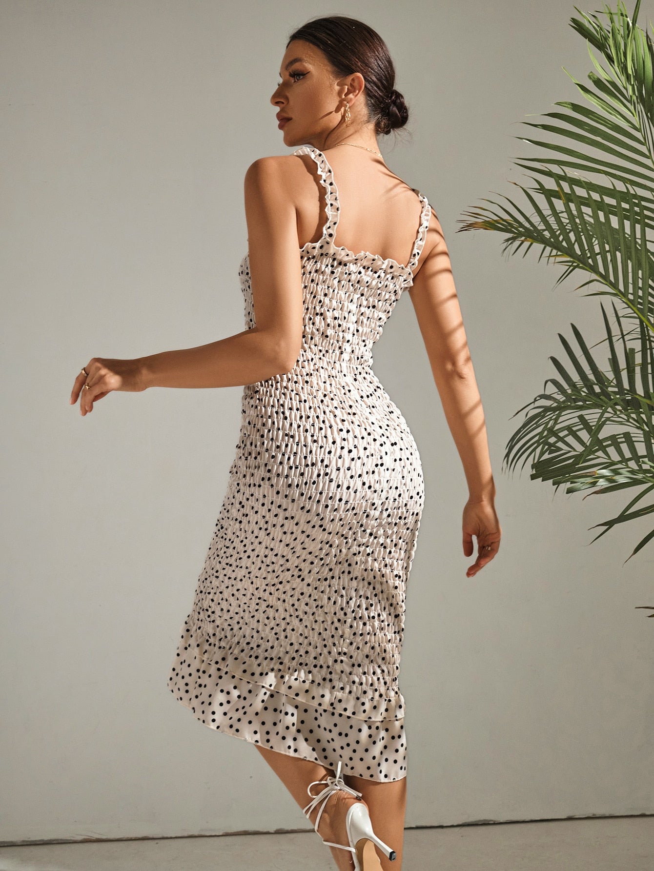 Chic & Playful Polka Dot Ruffle Trim Dress for Effortless Holiday Style