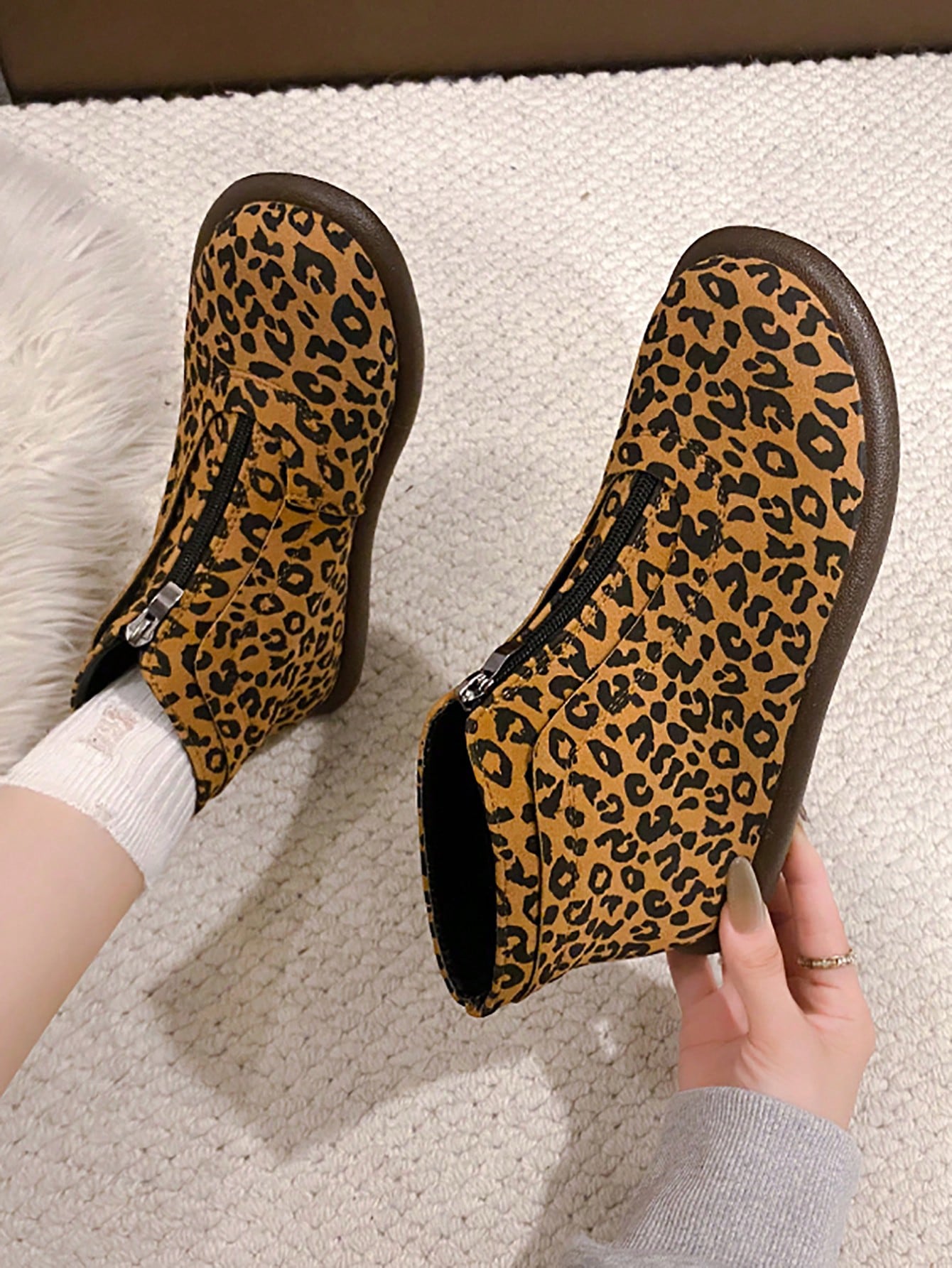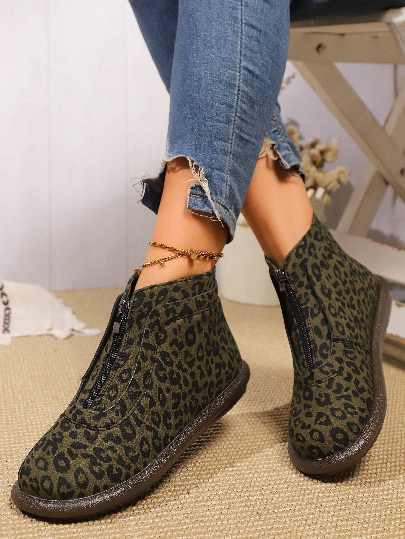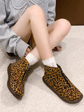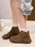 Chic Plus Size British Ankle Boots: Stylish Leopard Print & Comfy Flat Design