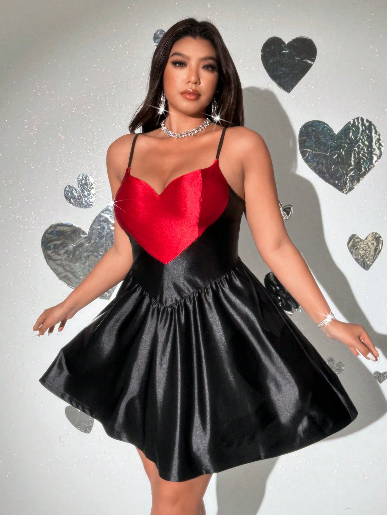 Get ready to turn heads with our Chic Plus Size Heart Decor Contrast Tube Dress. This dress effortlessly combines style and comfort with its flowy silhouette and heart-shaped accents. Perfect for any occasion, it's sure to be your new go-to dress!