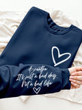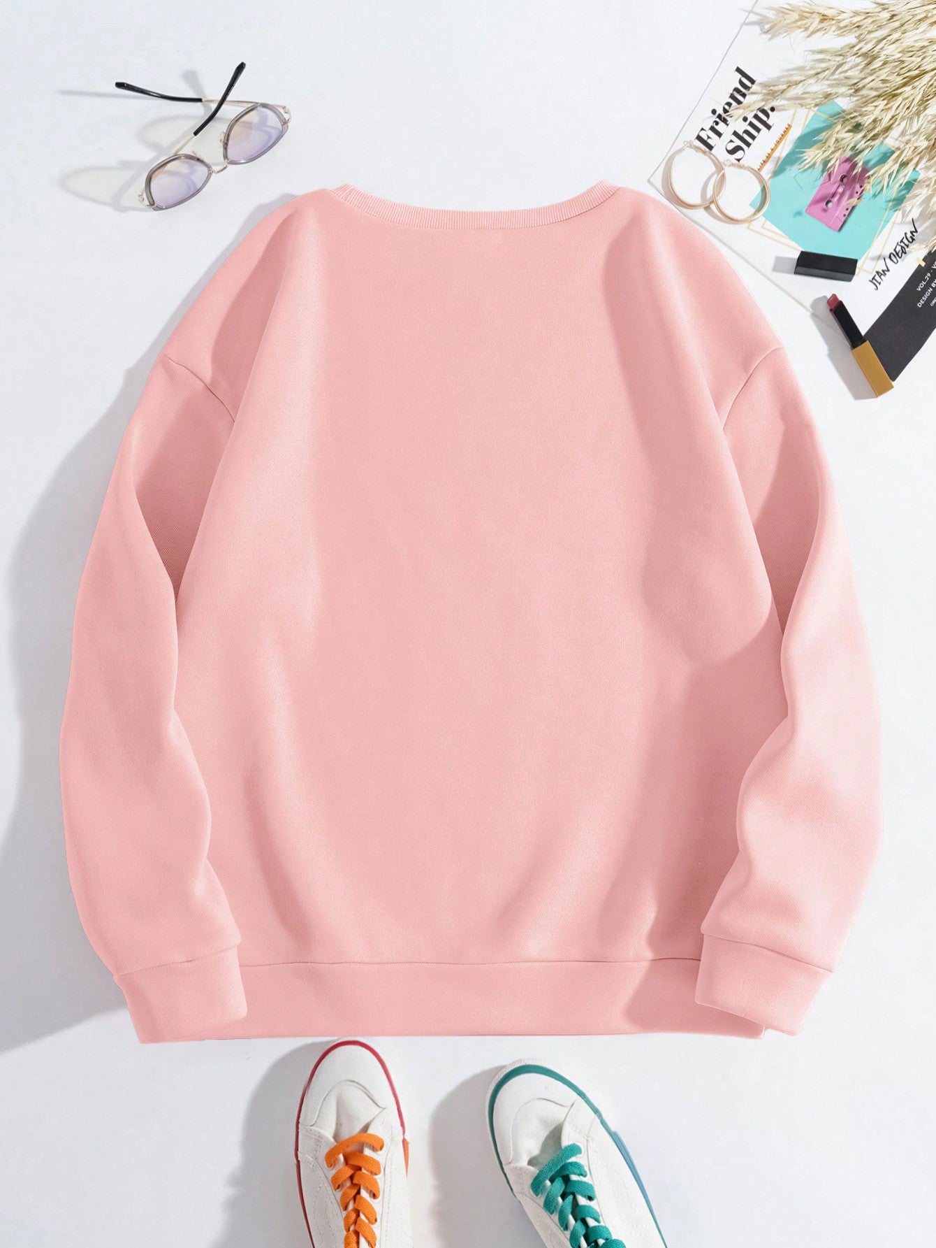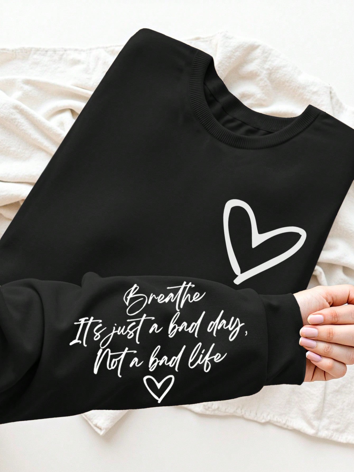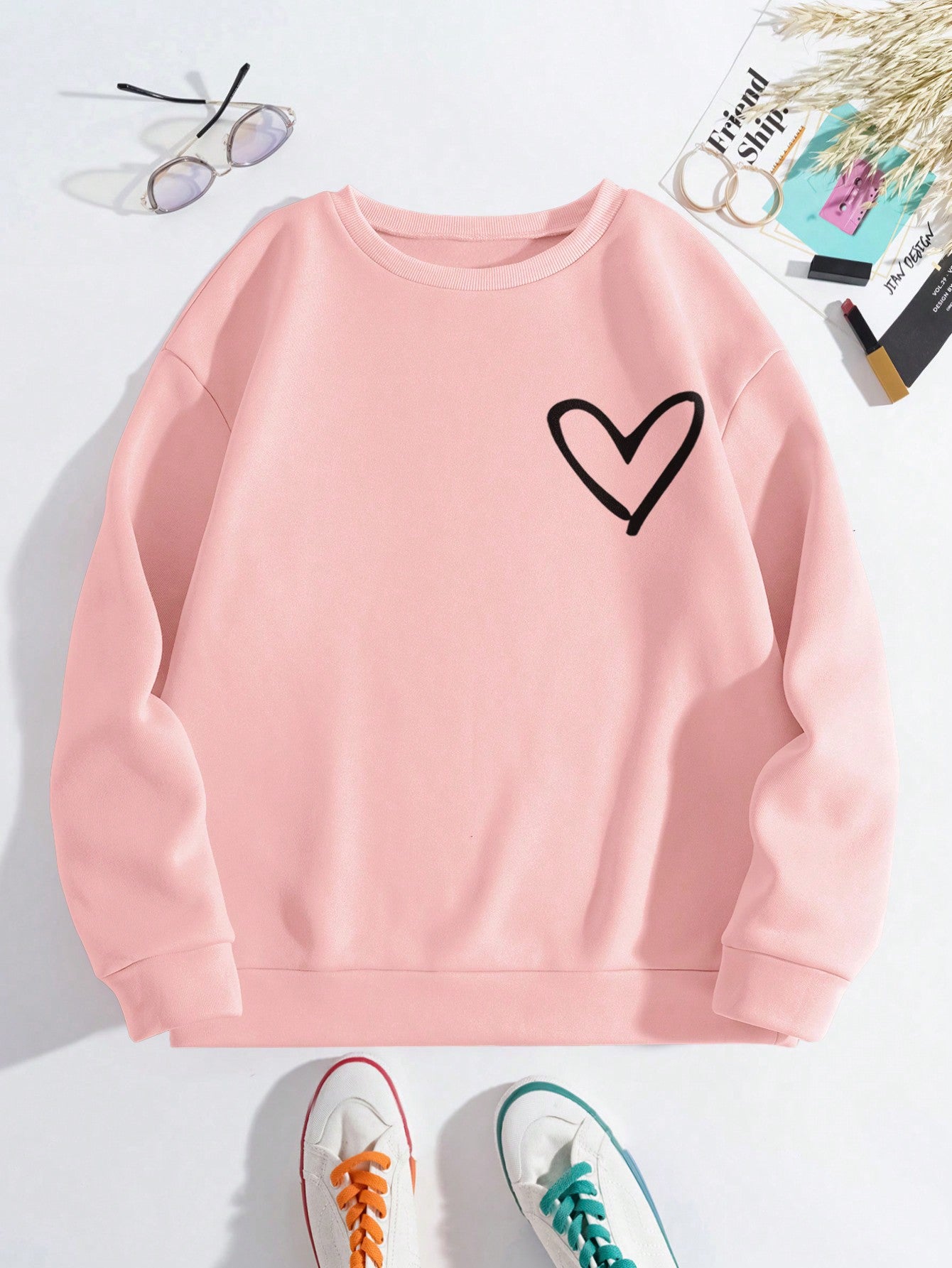 Chic Plus Size Heart Graphic Sweatshirt with English Letter Print