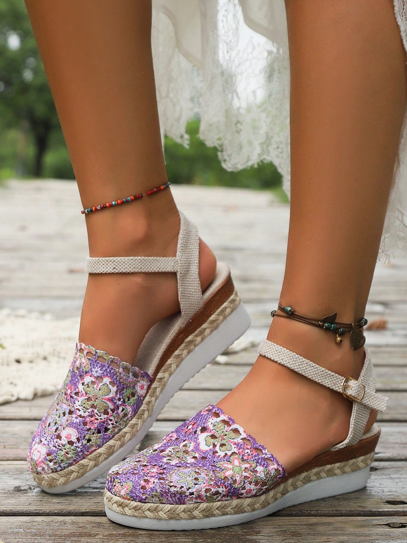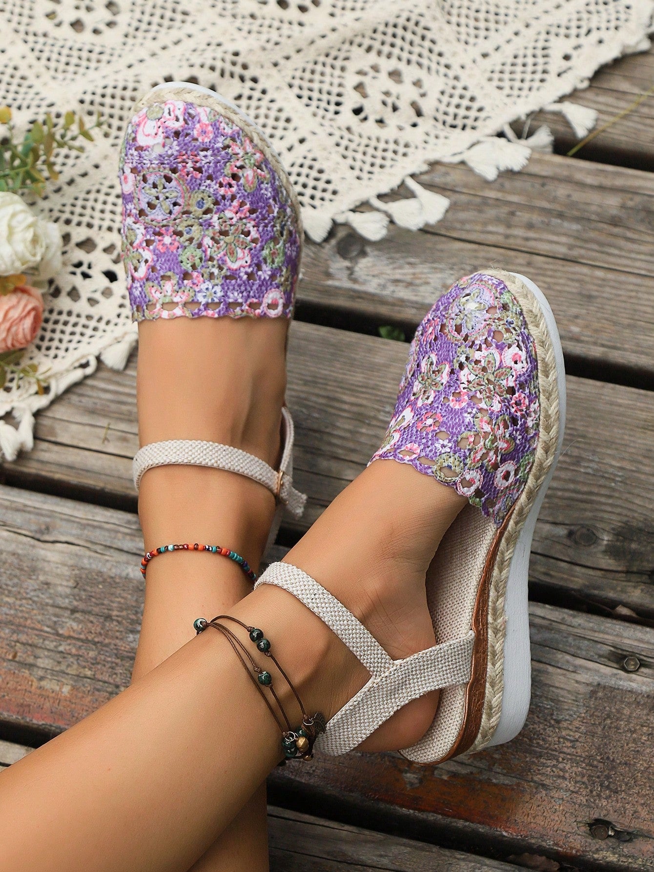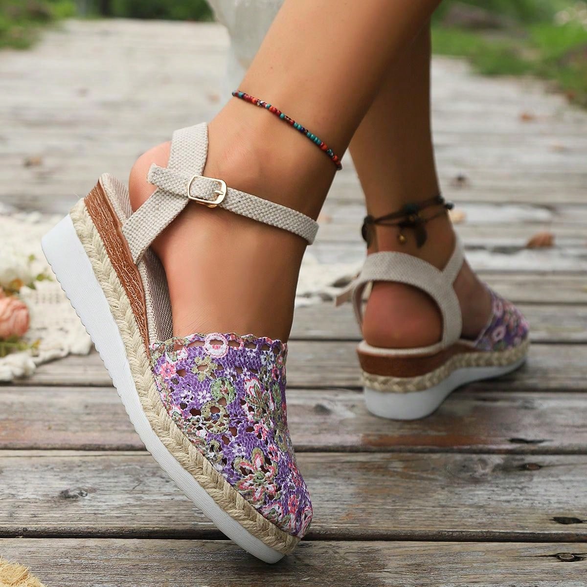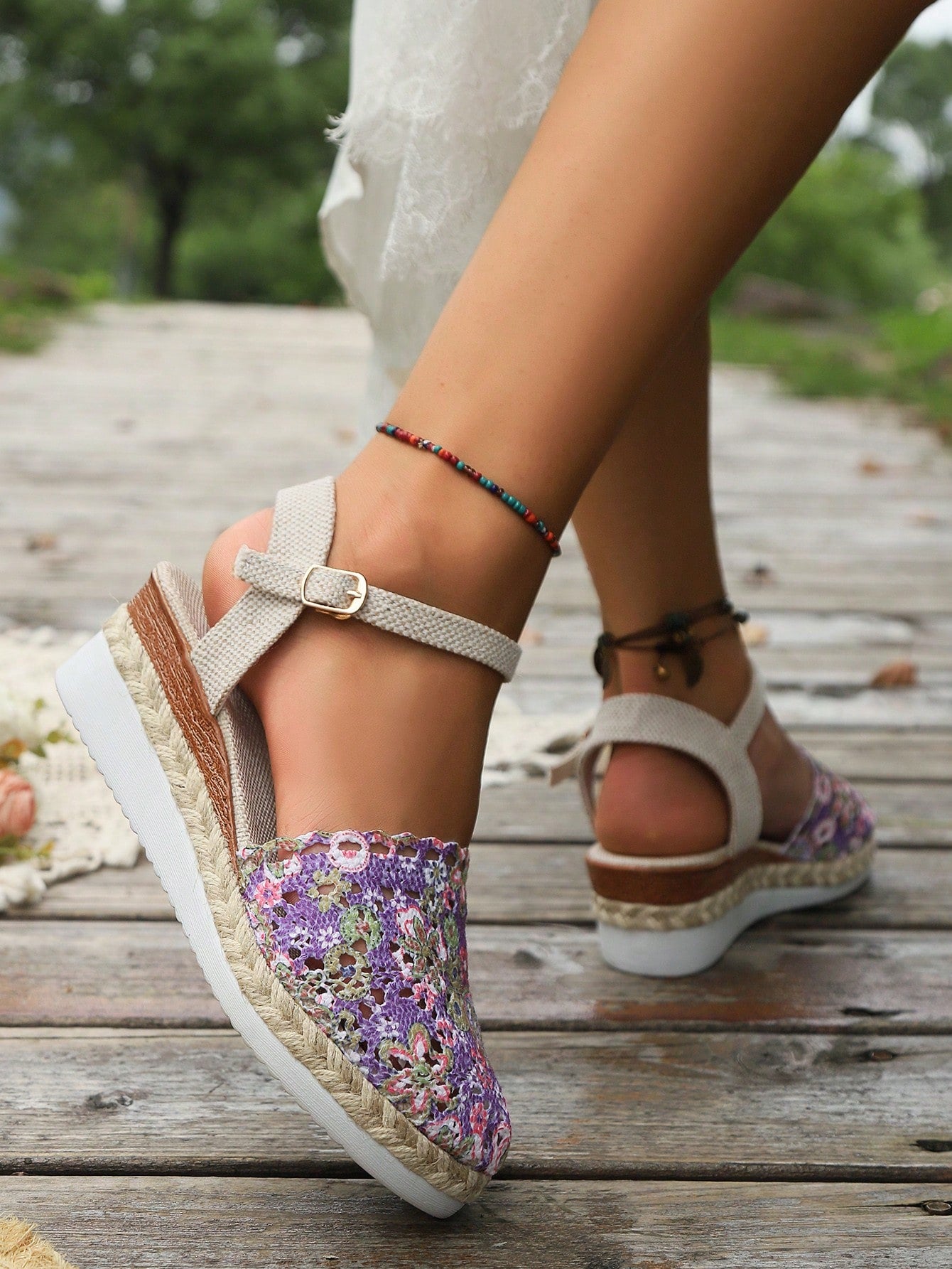 Chic Plus Size Wedge Heel Floral Sandals: Elevate Your Style with High Heeled Open Toe Shoes