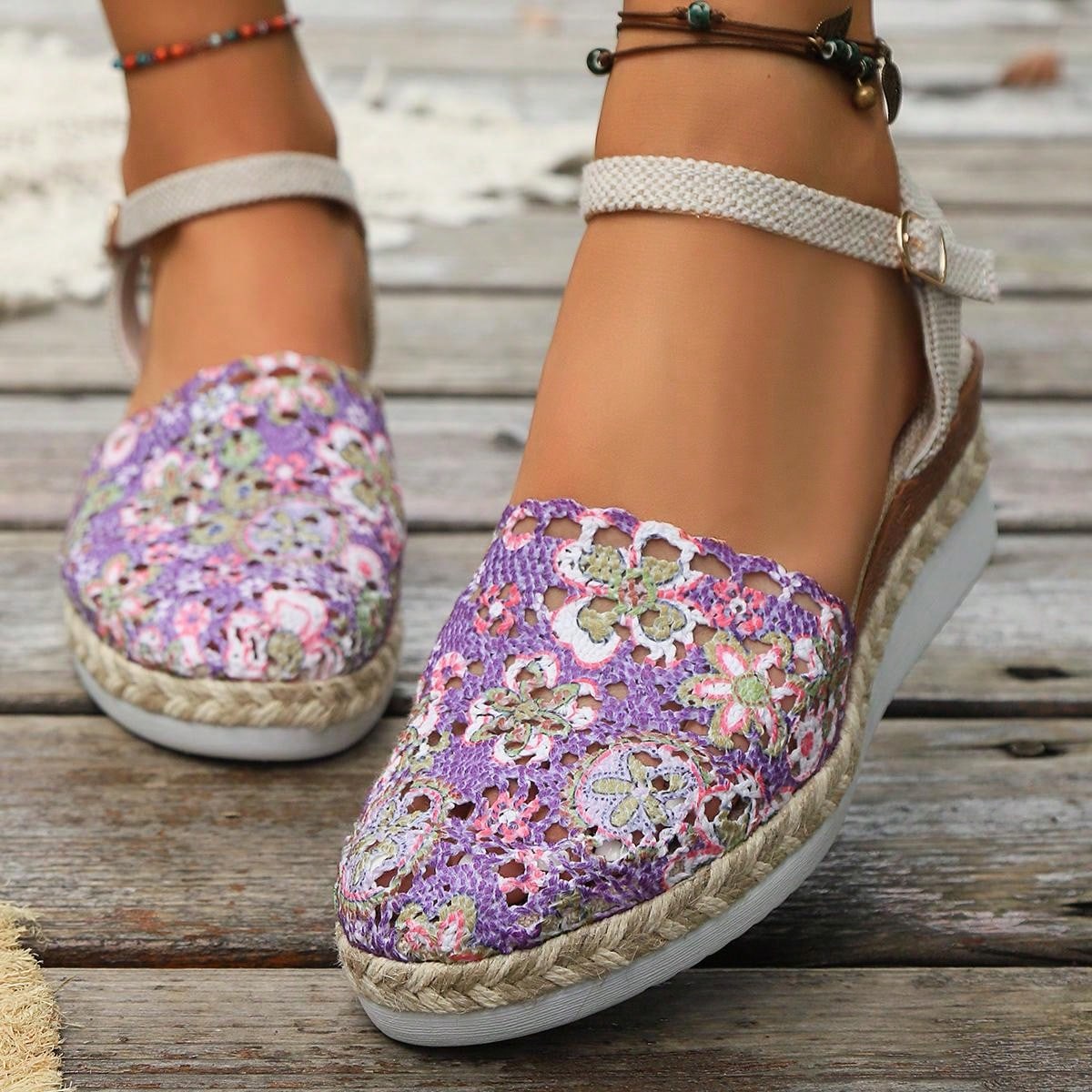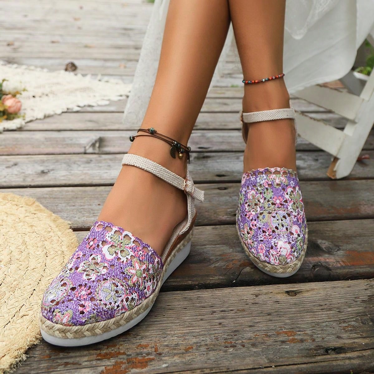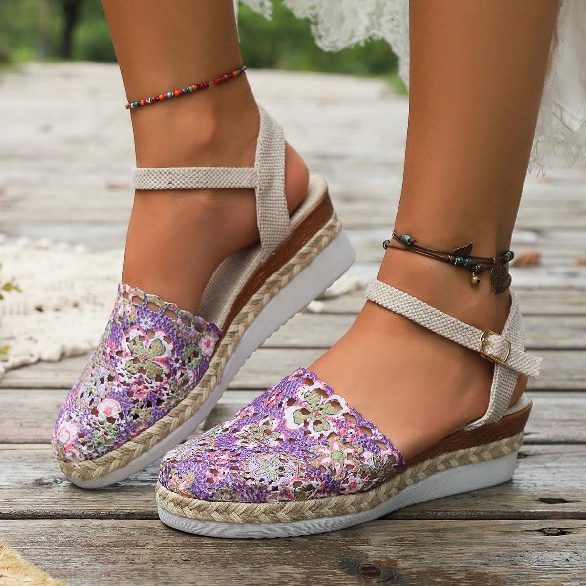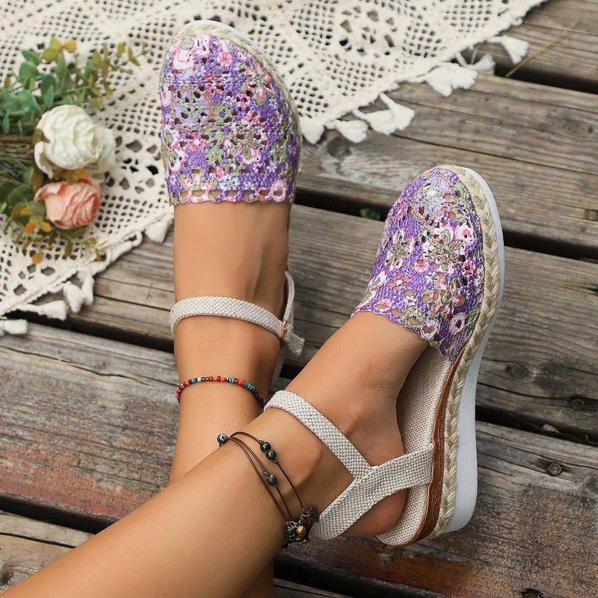Chic Plus Size Wedge Heel Floral Sandals: Elevate Your Style with High Heeled Open Toe Shoes