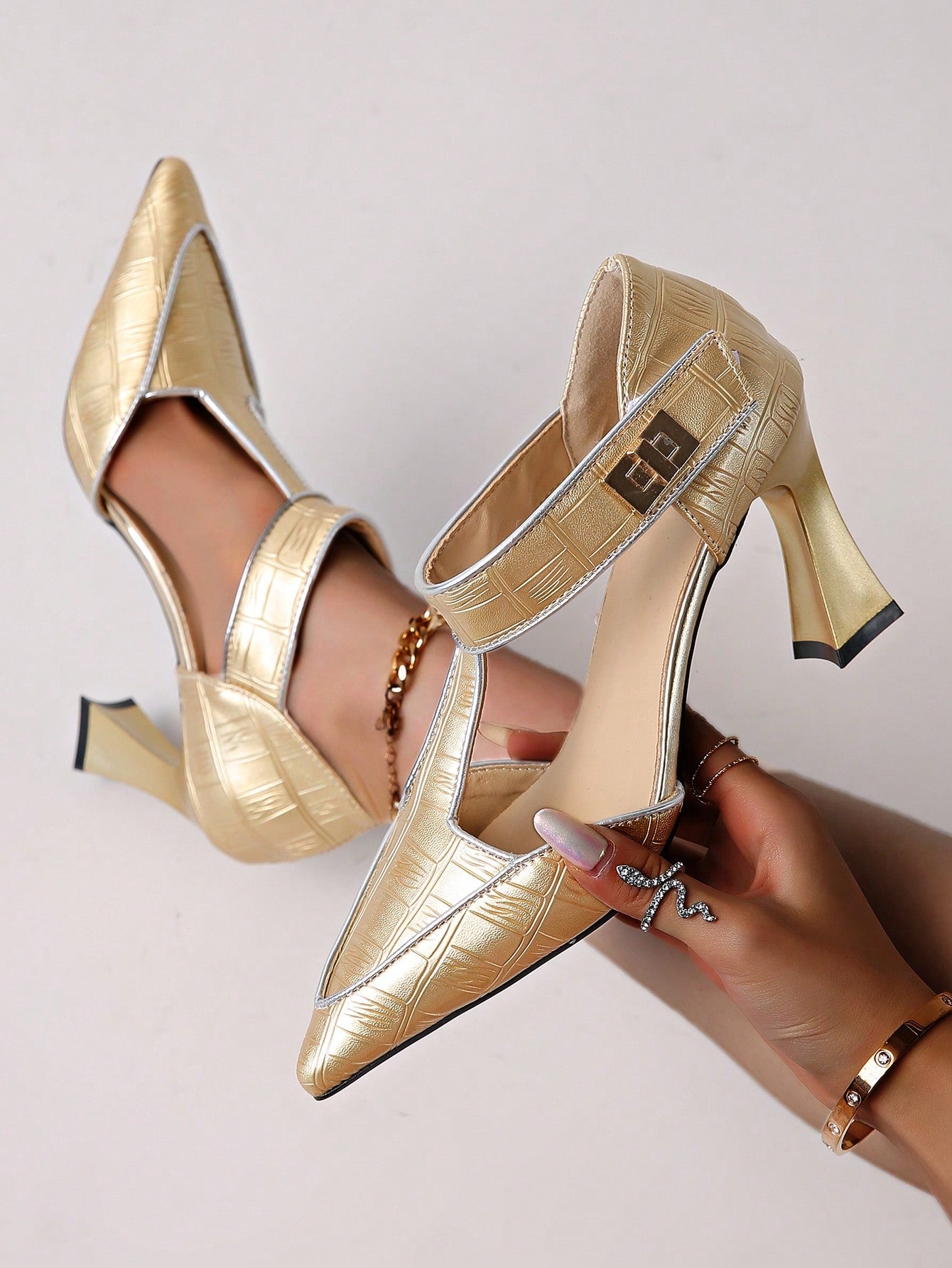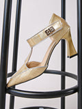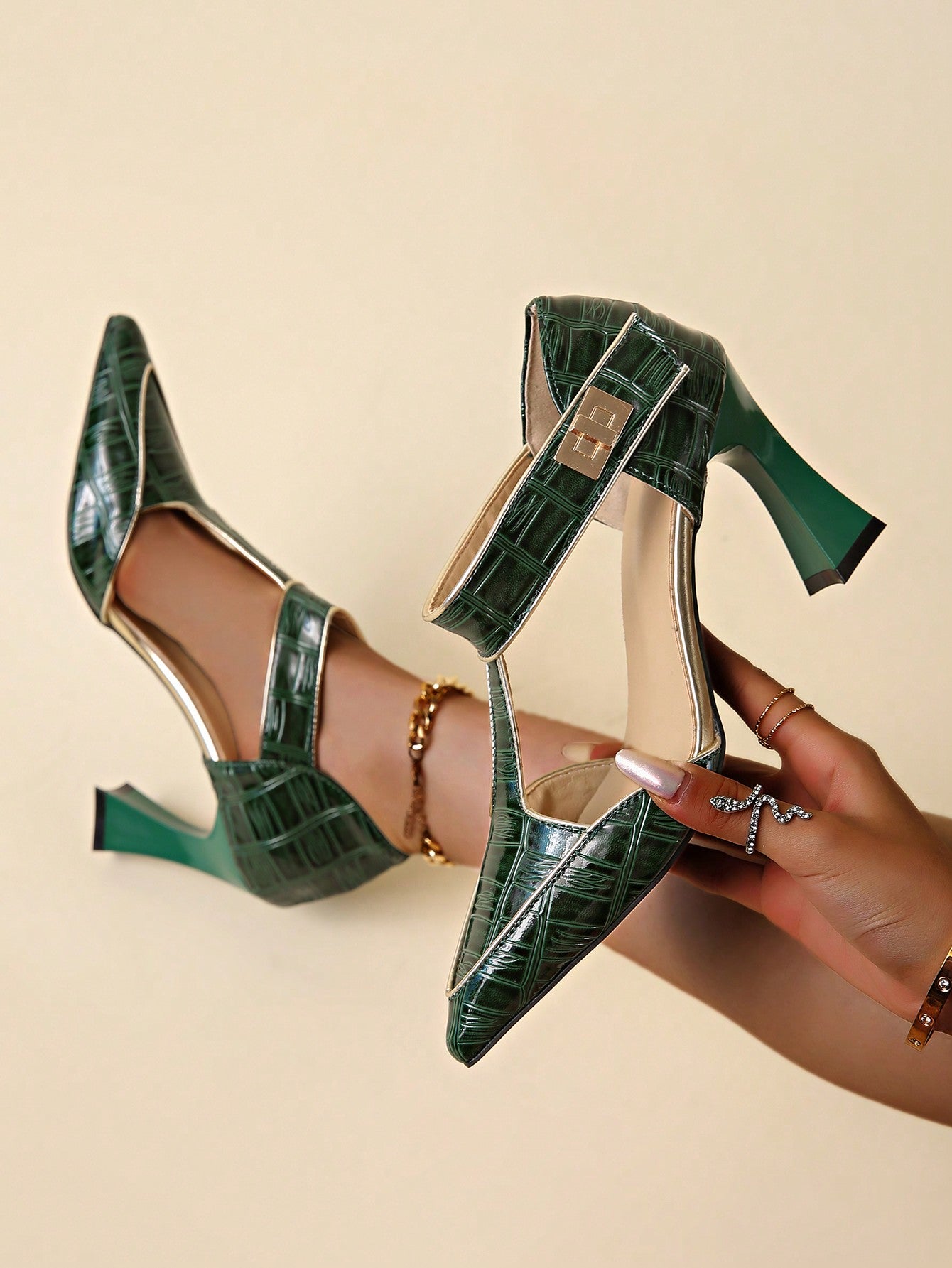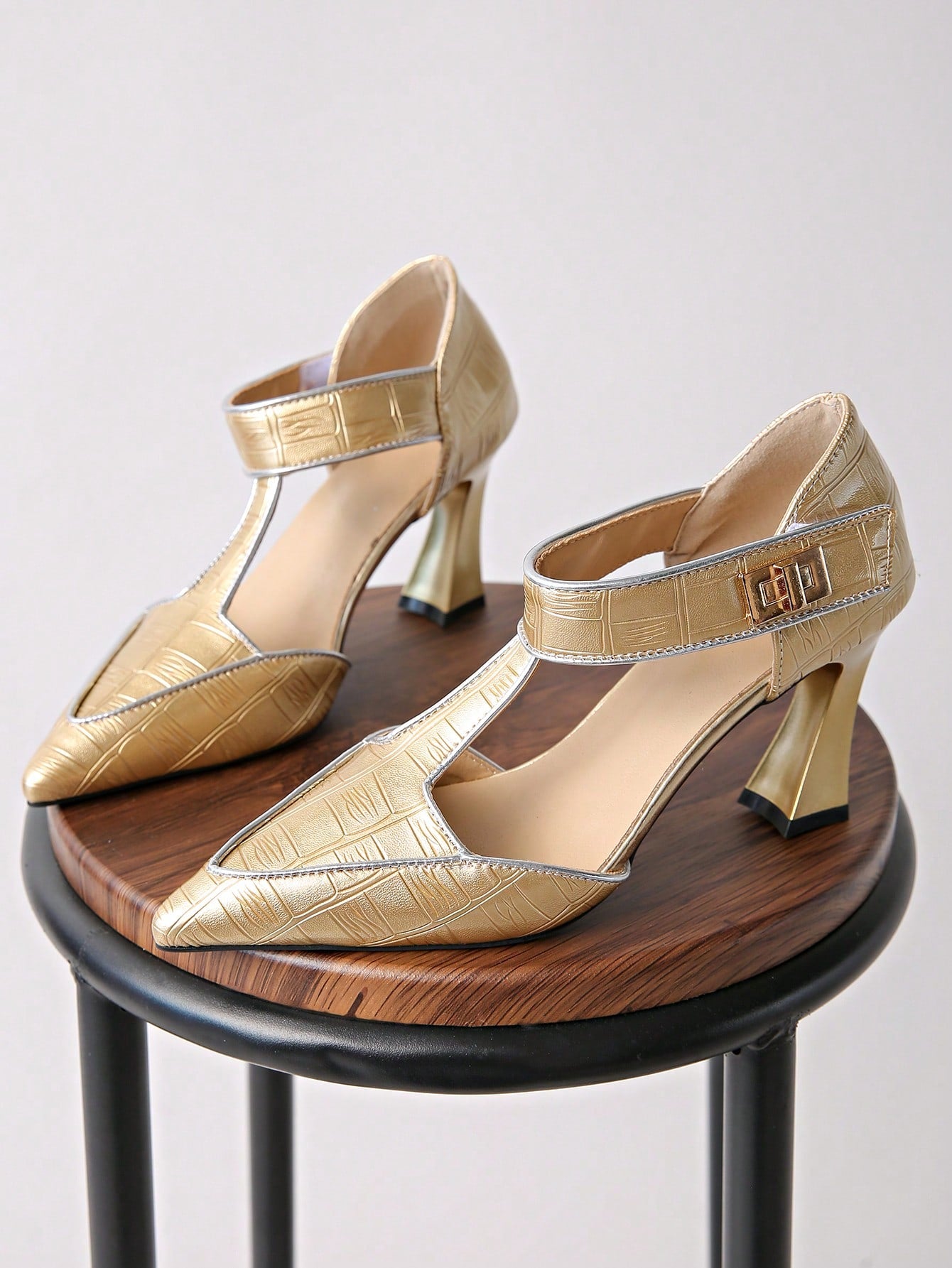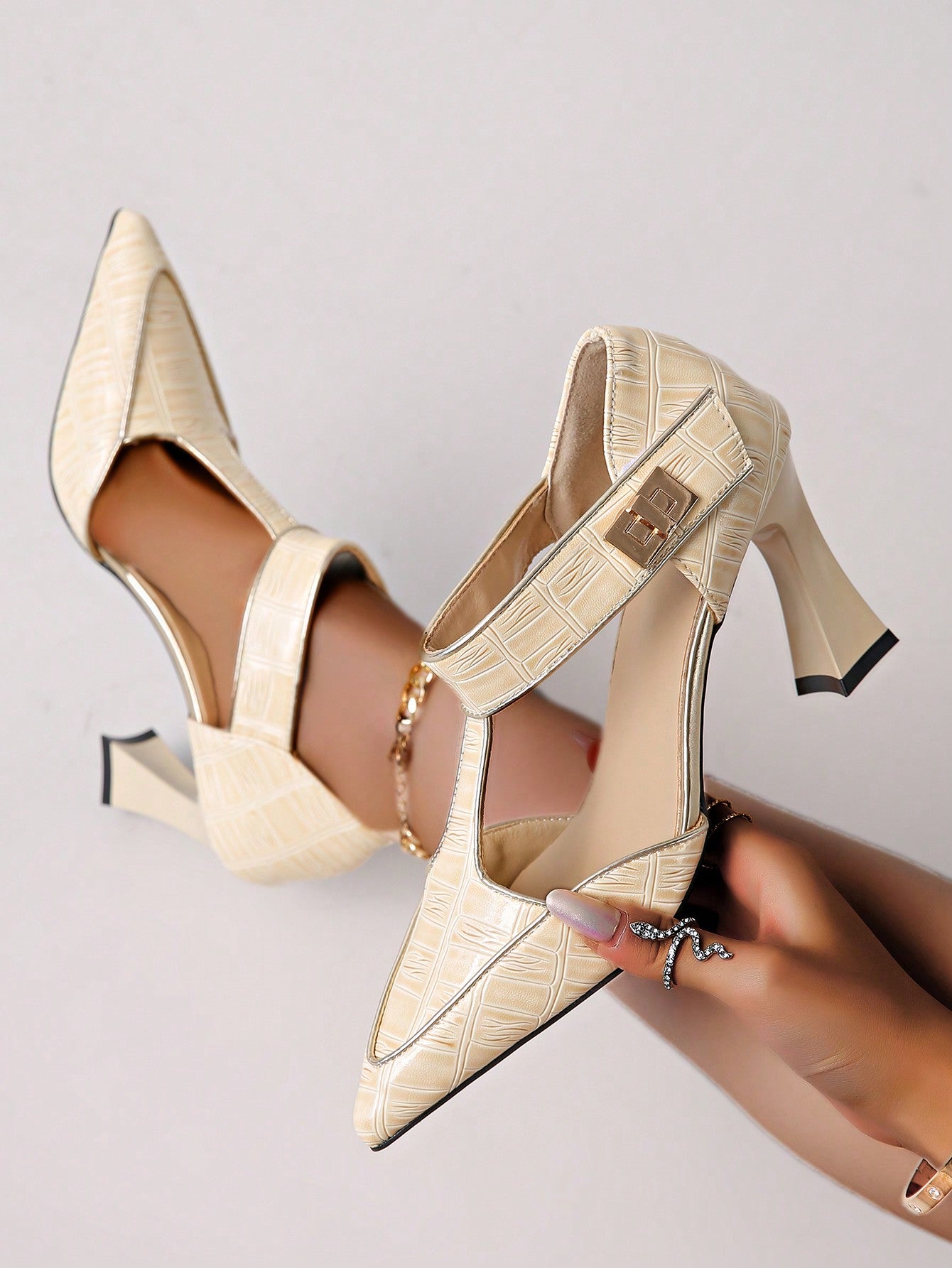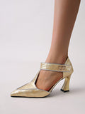 Elevate your style with these Chic Pointed Toe Chunky Heel Mary Jane Flats. The pointed toe adds sophistication while the chunky heel provides comfort and support. Easily transition from day to night with these effortless yet elegant flats.