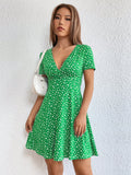 Chic Polka Dot V-Neck Wrap Dress for Effortless Spring-Summer Elegance