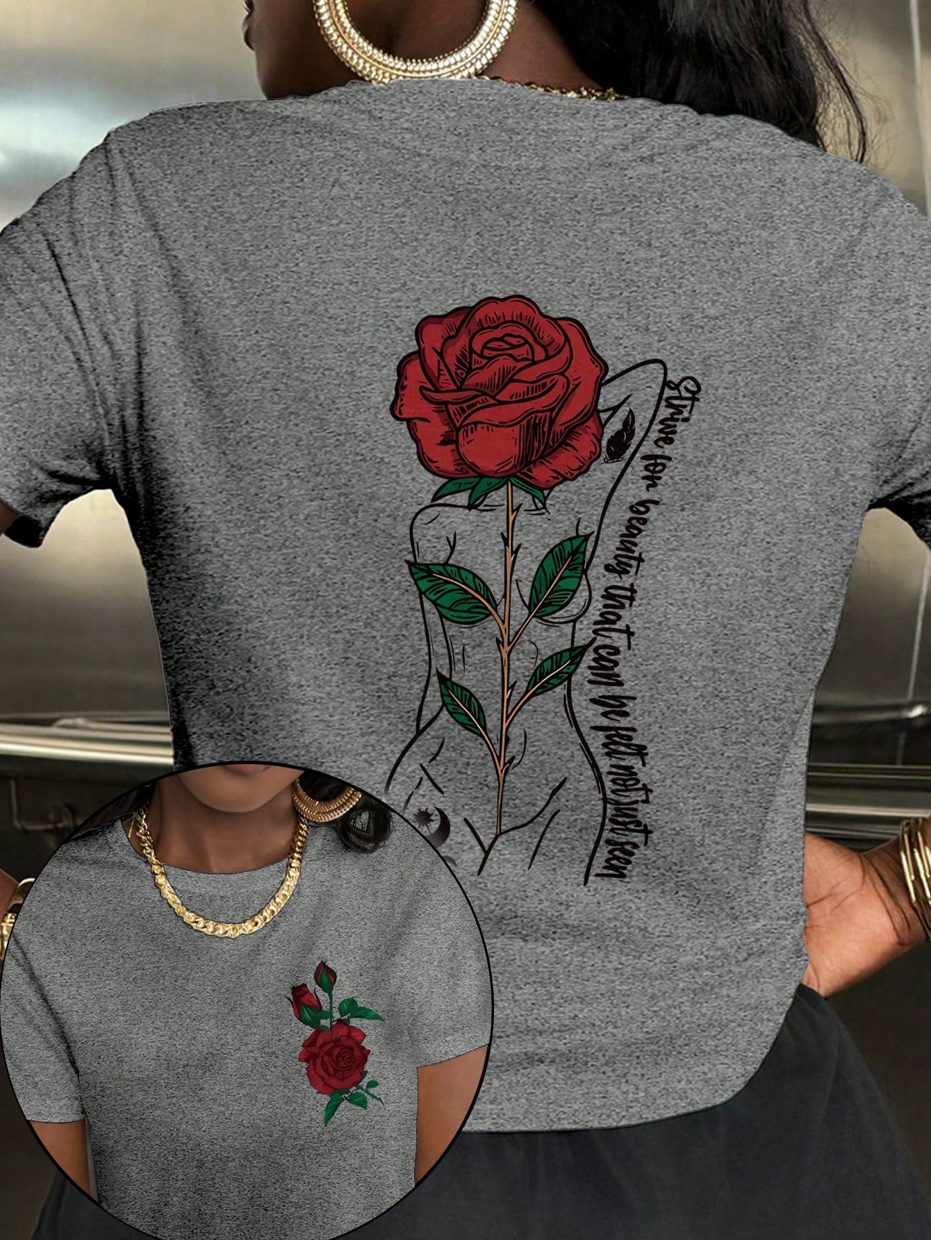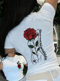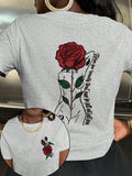 Chic Rose Letter Print Short Sleeve T-Shirt for Effortless Style