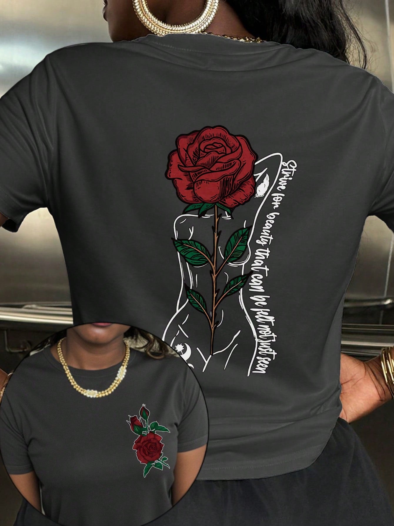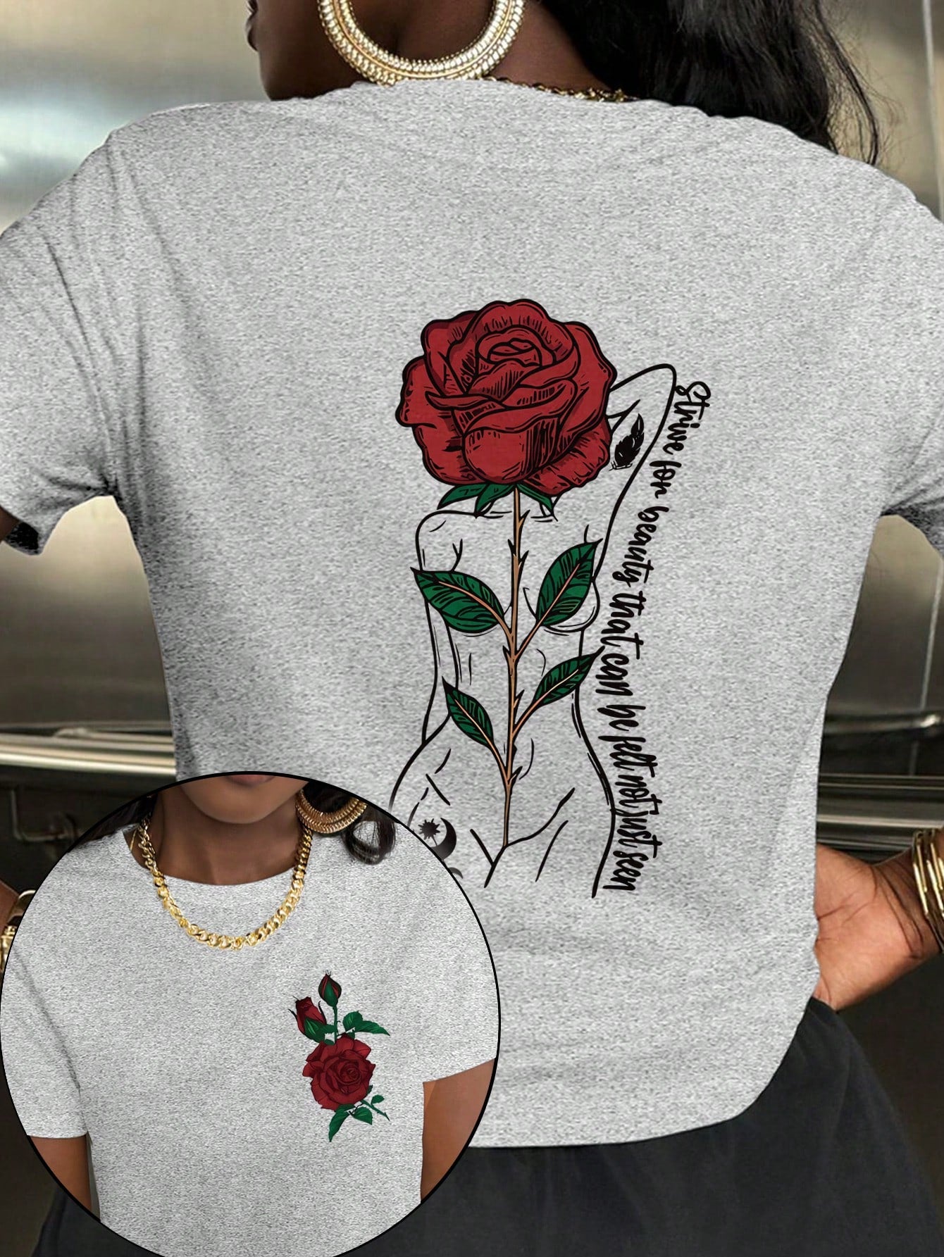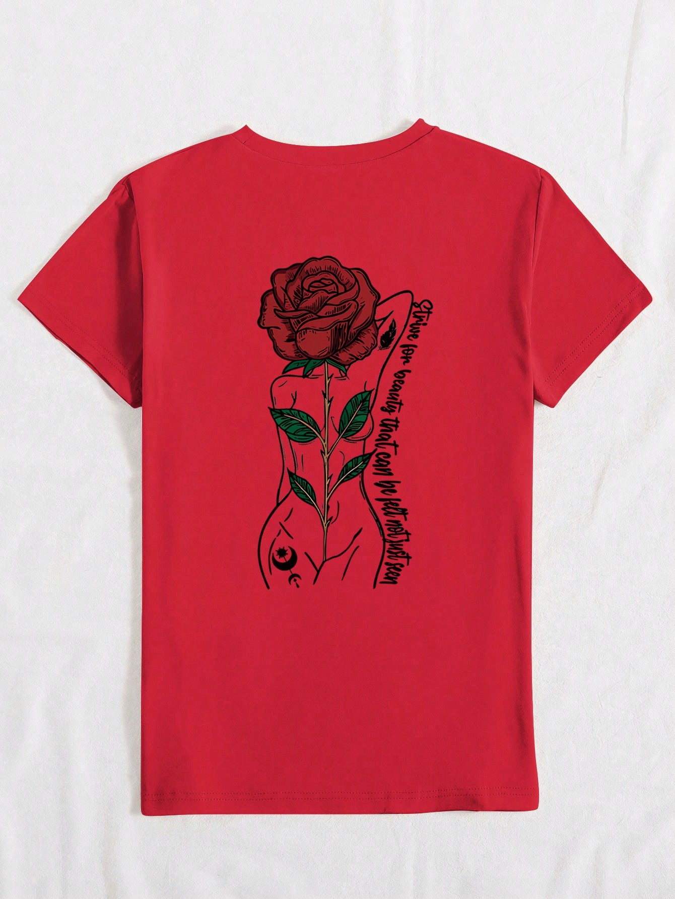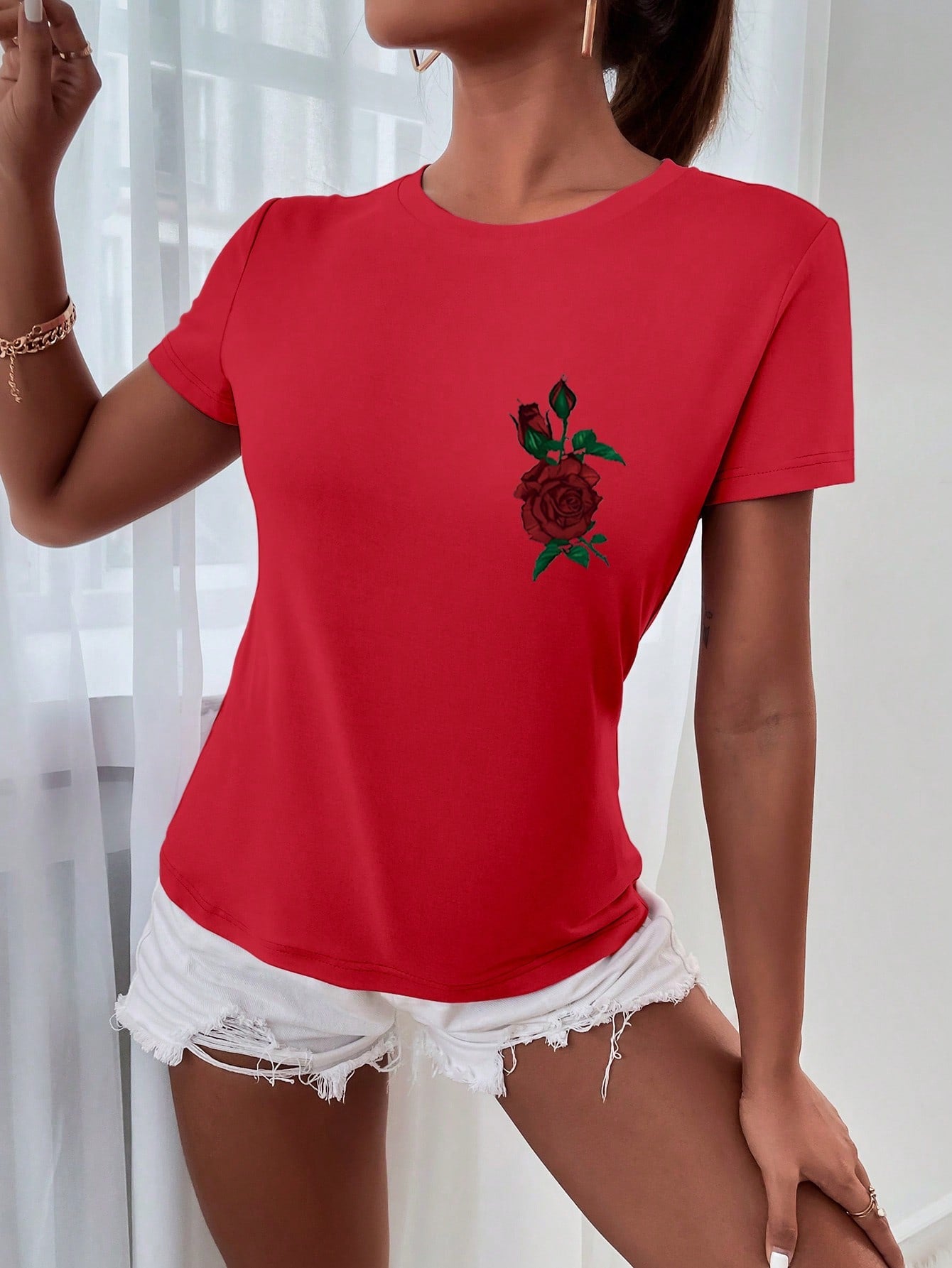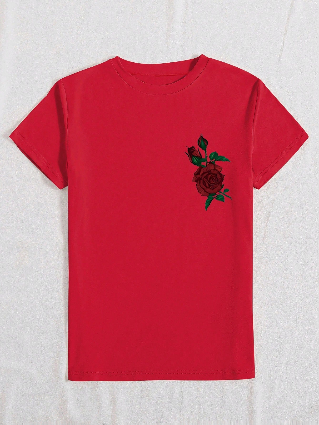 Stay effortlessly stylish with our Chic Rose Letter Print Short Sleeve T-Shirt. This tee boasts a trendy rose letter print that adds a touch of whimsy to any outfit. With its relaxed fit and short sleeves, it's perfect for casual and comfortable wear. Keep your style game on point and grab one now!