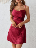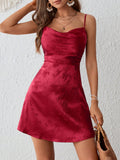 Chic Satin Cami Dress with Draped Collar and Jacquard Detail
