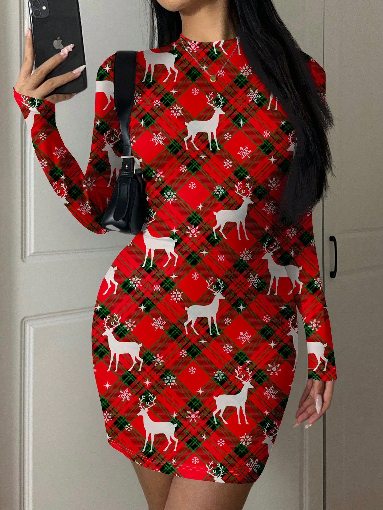 Chic & Sexy Long Sleeve Bodycon Midi Dress for Effortless Holiday Glam