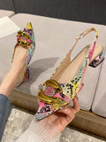 Chic Snakeskin Embossed Pointed Toe Slingback Flats with Metal Accents