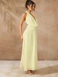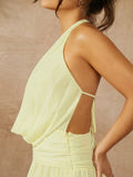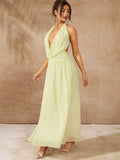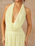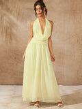 Chic Solid Color Halter Tie Back Ruched Long Dress - Perfect for Casual Holidays