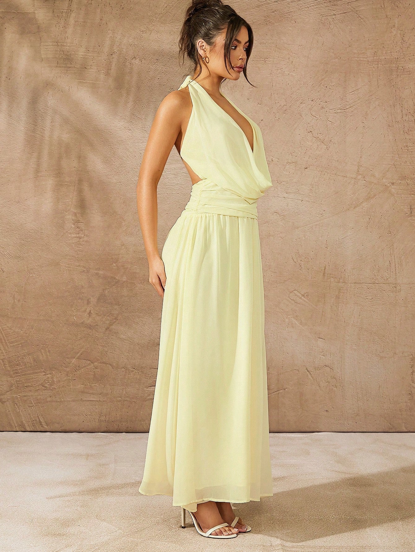 Effortlessly elevate your style with our Chic Solid Color Halter Tie Back Ruched Long Dress. This stunning piece is perfect for casual holidays, offering a flattering fit with its ruched design and tie back halter. Its solid color adds a touch of elegance, making it a versatile addition to your wardrobe.