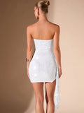 Chic & Sparkling: Sleeveless Ruched High-Slit Evening Dress with Beaded Sequin Detail