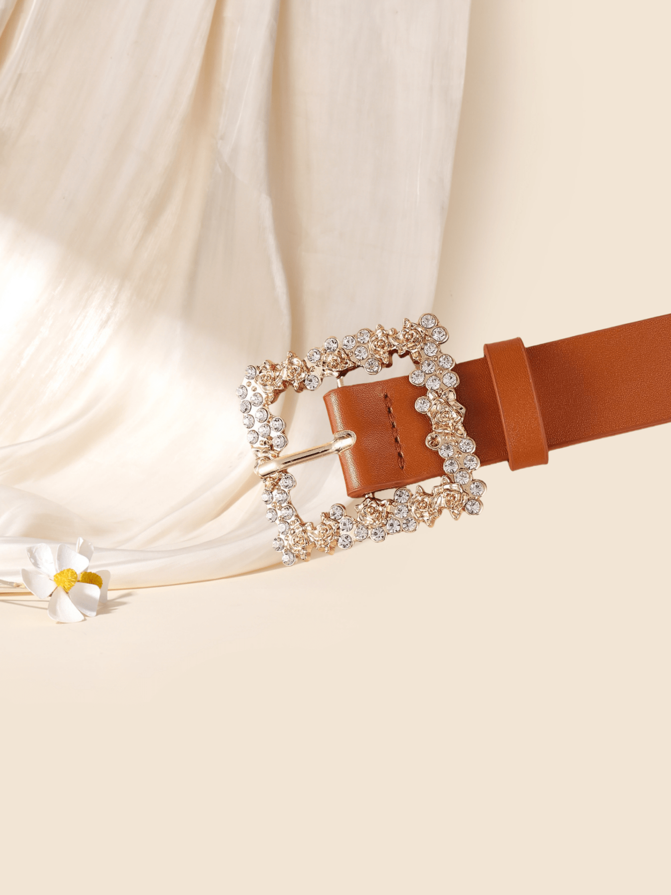 Chic Square Flower Rhinestone Buckle Versatile Fashion Belt for Women