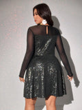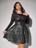 Chic & Statement-Making Plus Size Metallic Sheer Mesh Sweater Dress