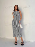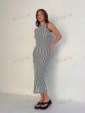 Chic Striped Lace-Up Back Sleeveless Dress for a Stylish Summer Look