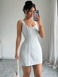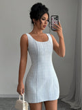 Chic Summer Plaid Dress: Women's Sleeveless Round Neck Elegance