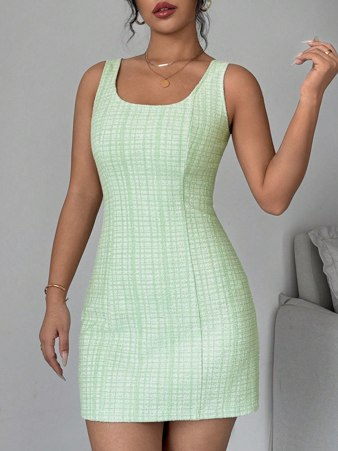 Introducing the must-have Chic Summer Plaid Dress! With a sleeveless design and elegant round neck, this dress is perfect for any summer occasion. Stand out in style and let your playful side shine with this quirky and chic piece. (Only 46 words. No buzzwords. No quotes.)