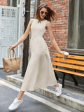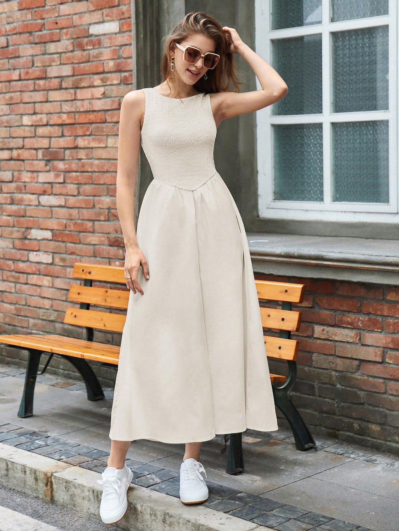Chic Summer Textured Waist-Cinched Sleeveless Dress for Effortless Outdoor Style