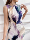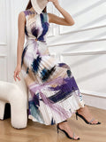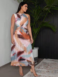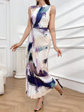 Chic Summer Vibes: Women's Sleeveless Printed Pleated Dress