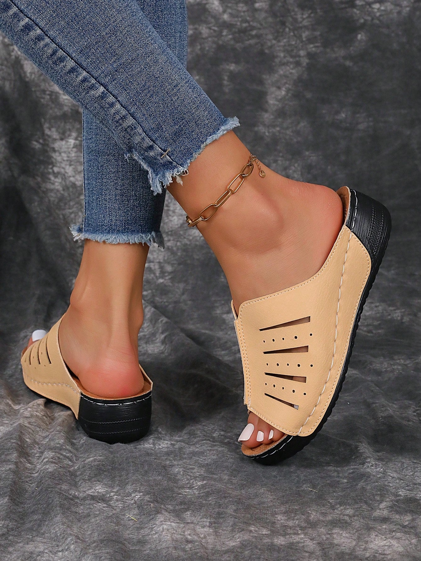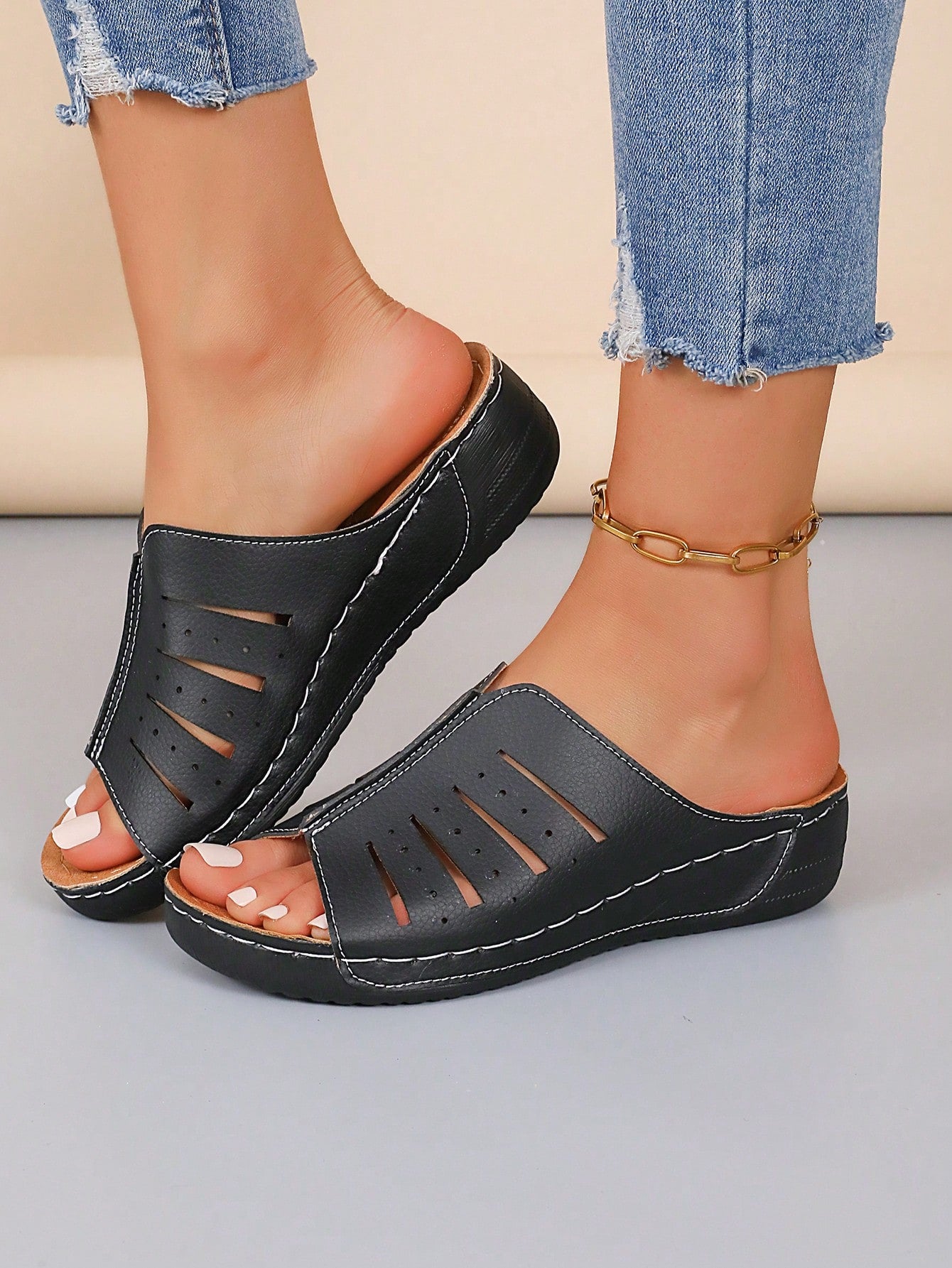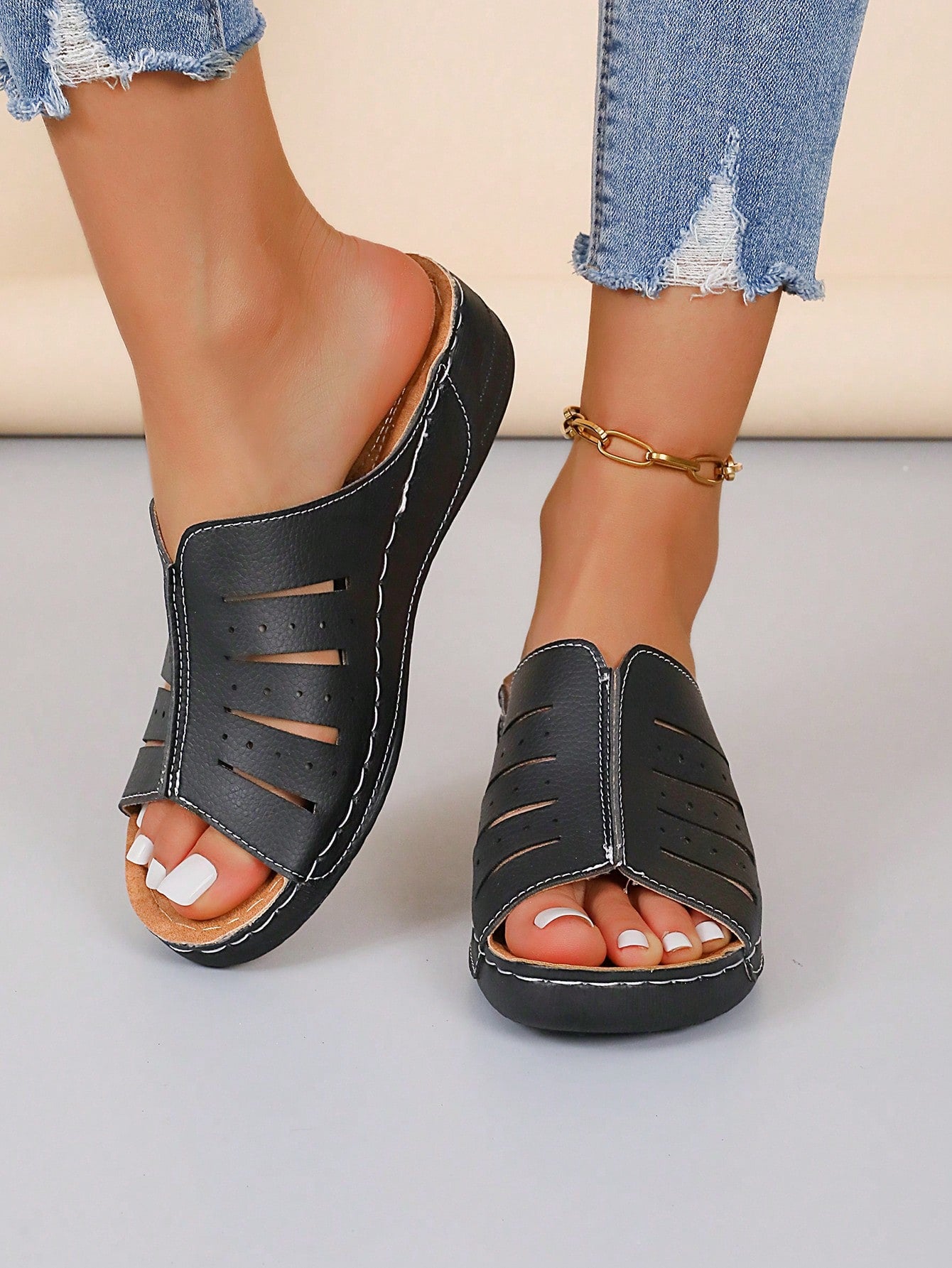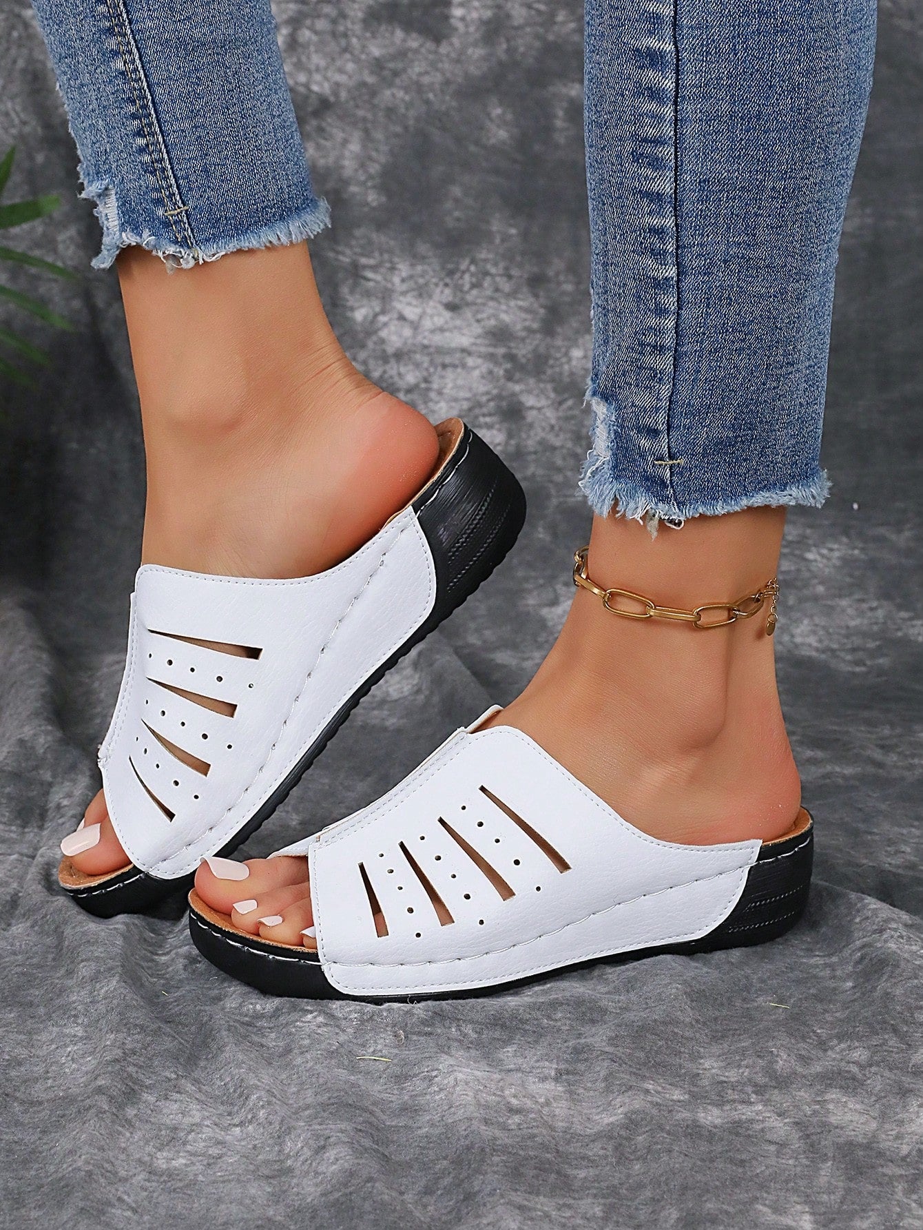 Chic Summer Wedge Slippers: Black & White Fashionable Sandals