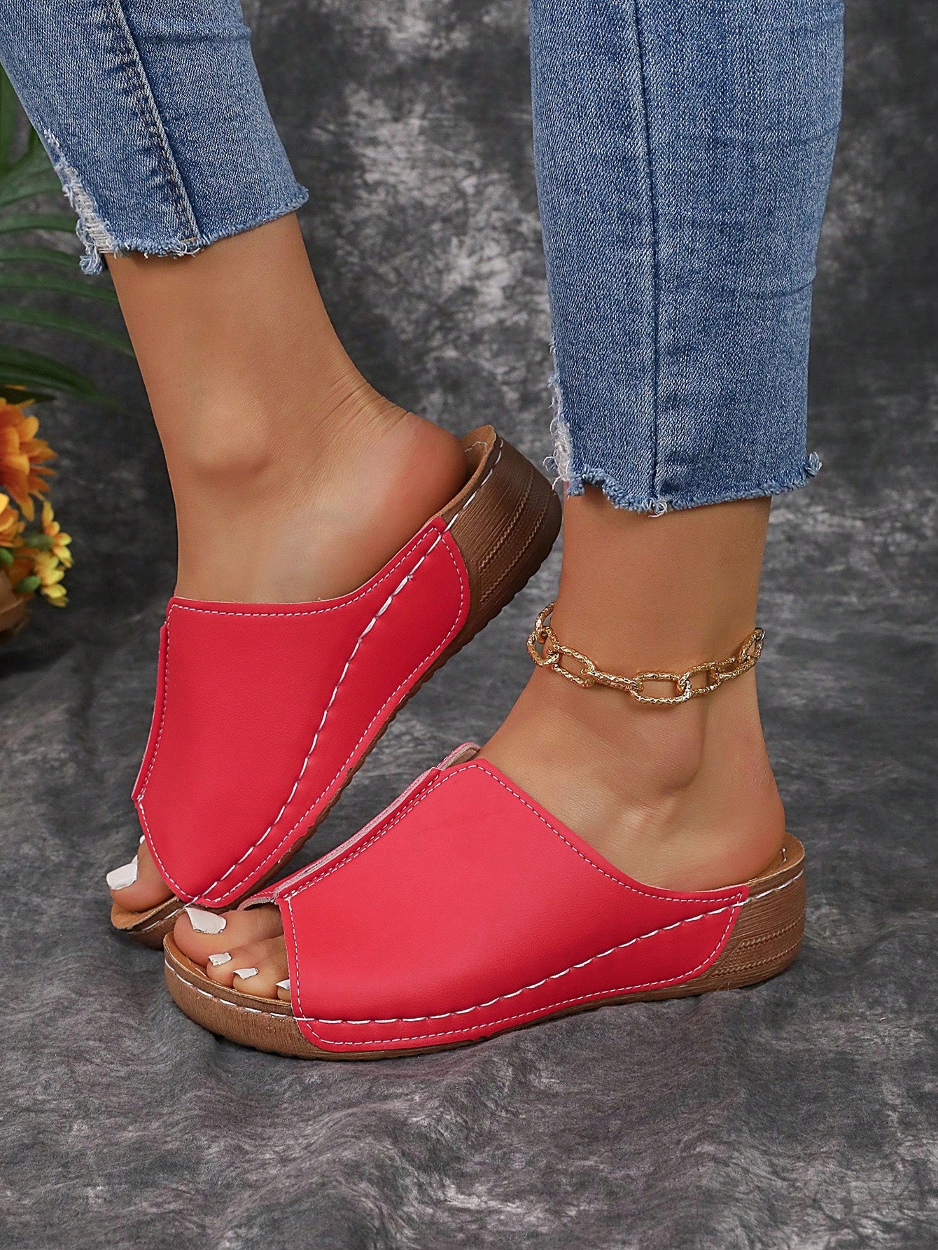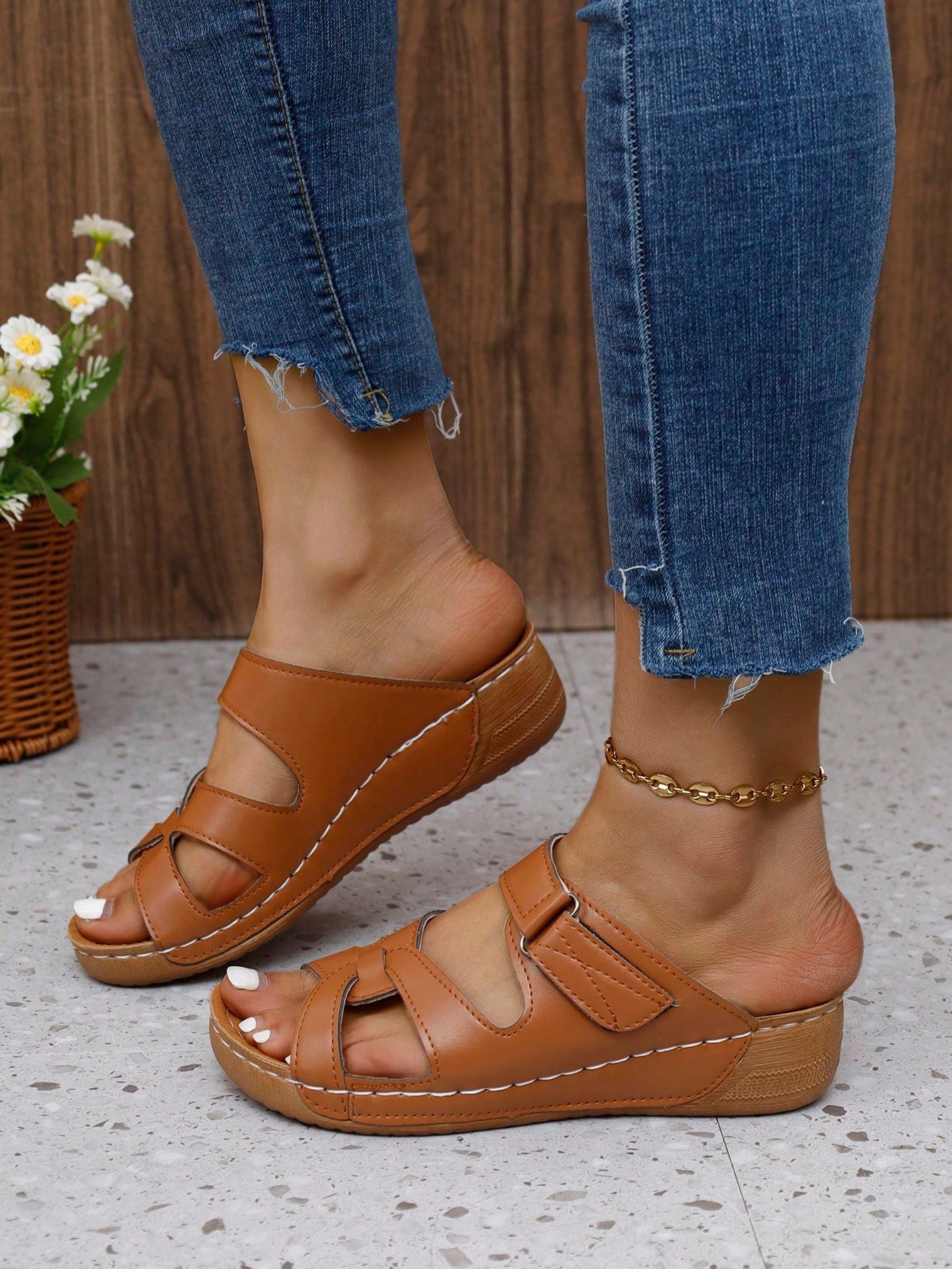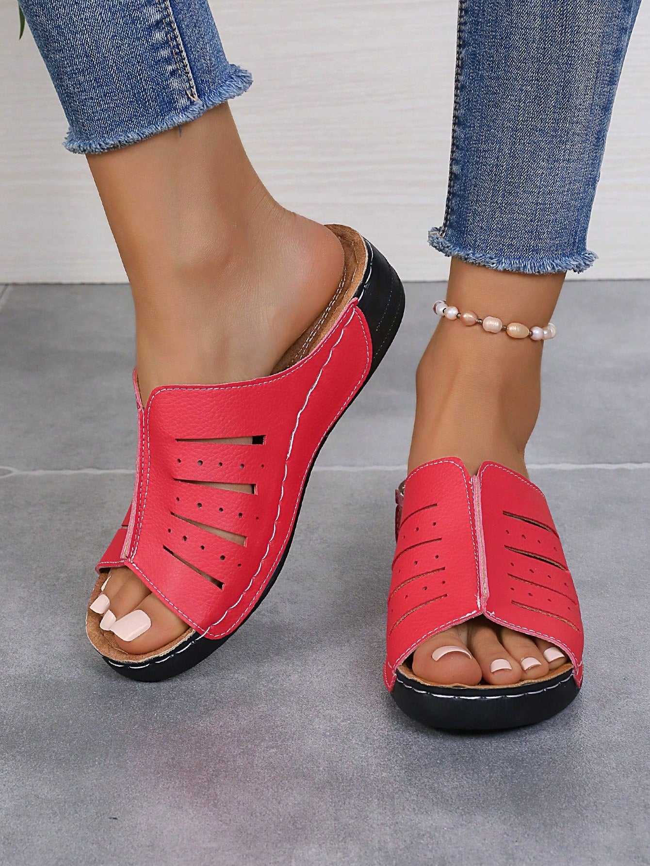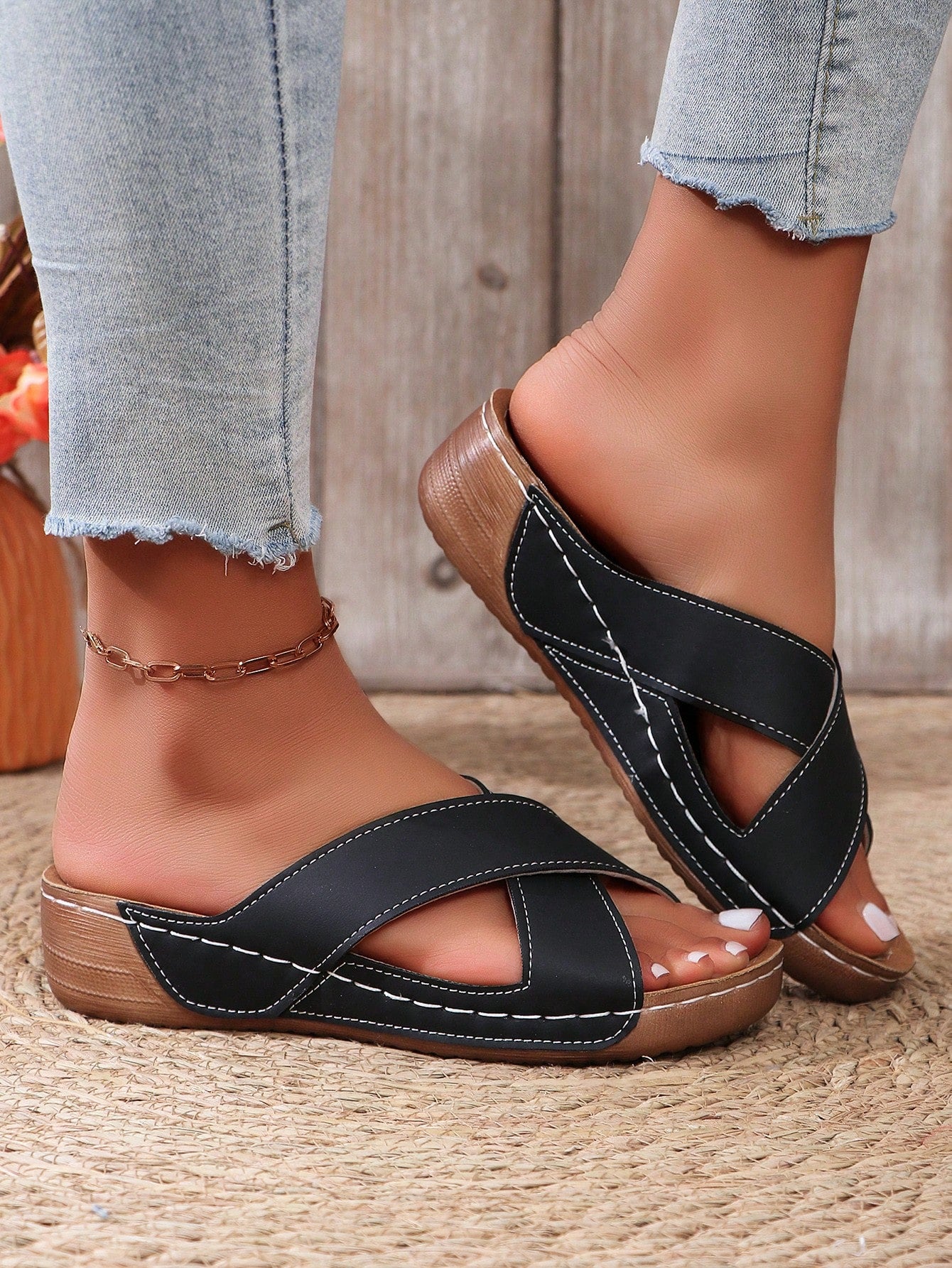 Chic Summer Wedge Slippers: Black & White Fashionable Sandals