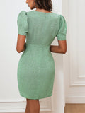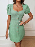 Chic Sweetheart Neck Puff Sleeve Button-Up Dress