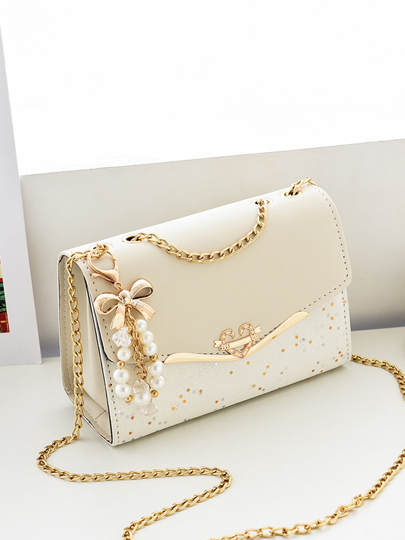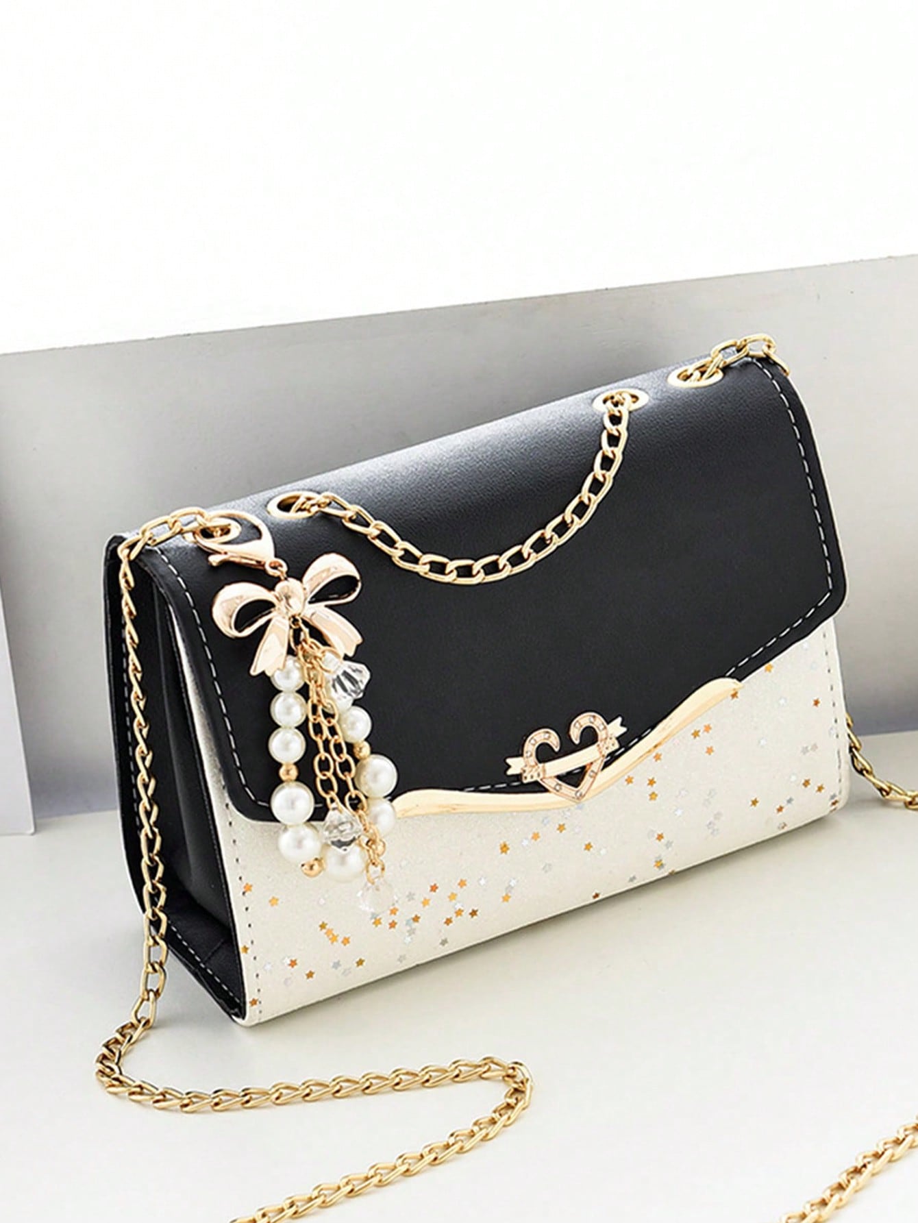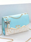 Chic Two-Tone Faux Pearl Decor Small Shoulder Bag