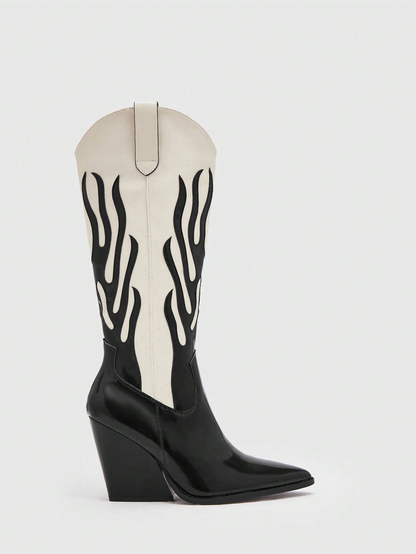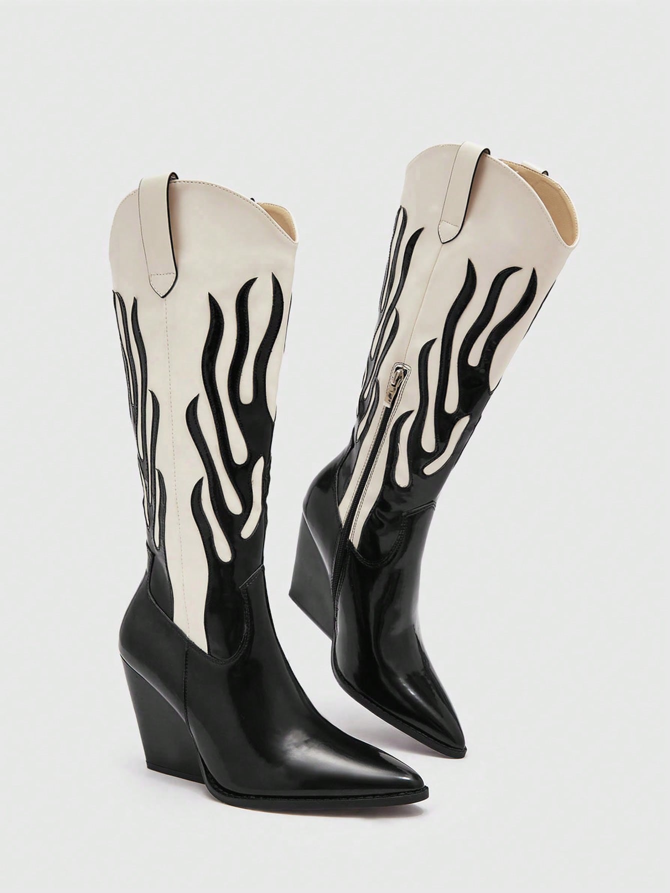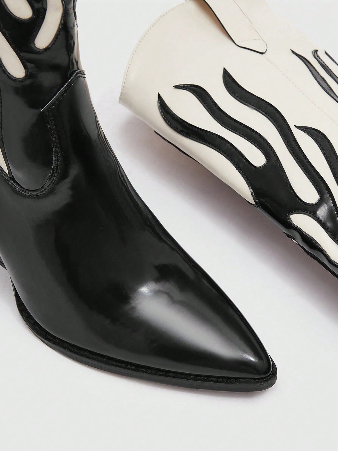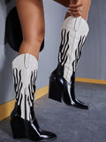 Chic Two-Tone Pointed Toe Western Boots - Black & White Fashion Footwear for Every Occasion