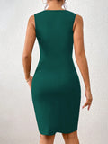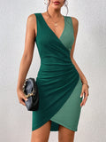 Chic Two-Tone Ruched Side Wrap Dress with Button Detail