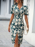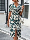 Chic Unity Floral Print Twist-Front Maxi Dress with Split Thigh
