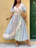 Chic V-Neck Ruffle Puff Sleeve Dress for Effortless French Vacation Style