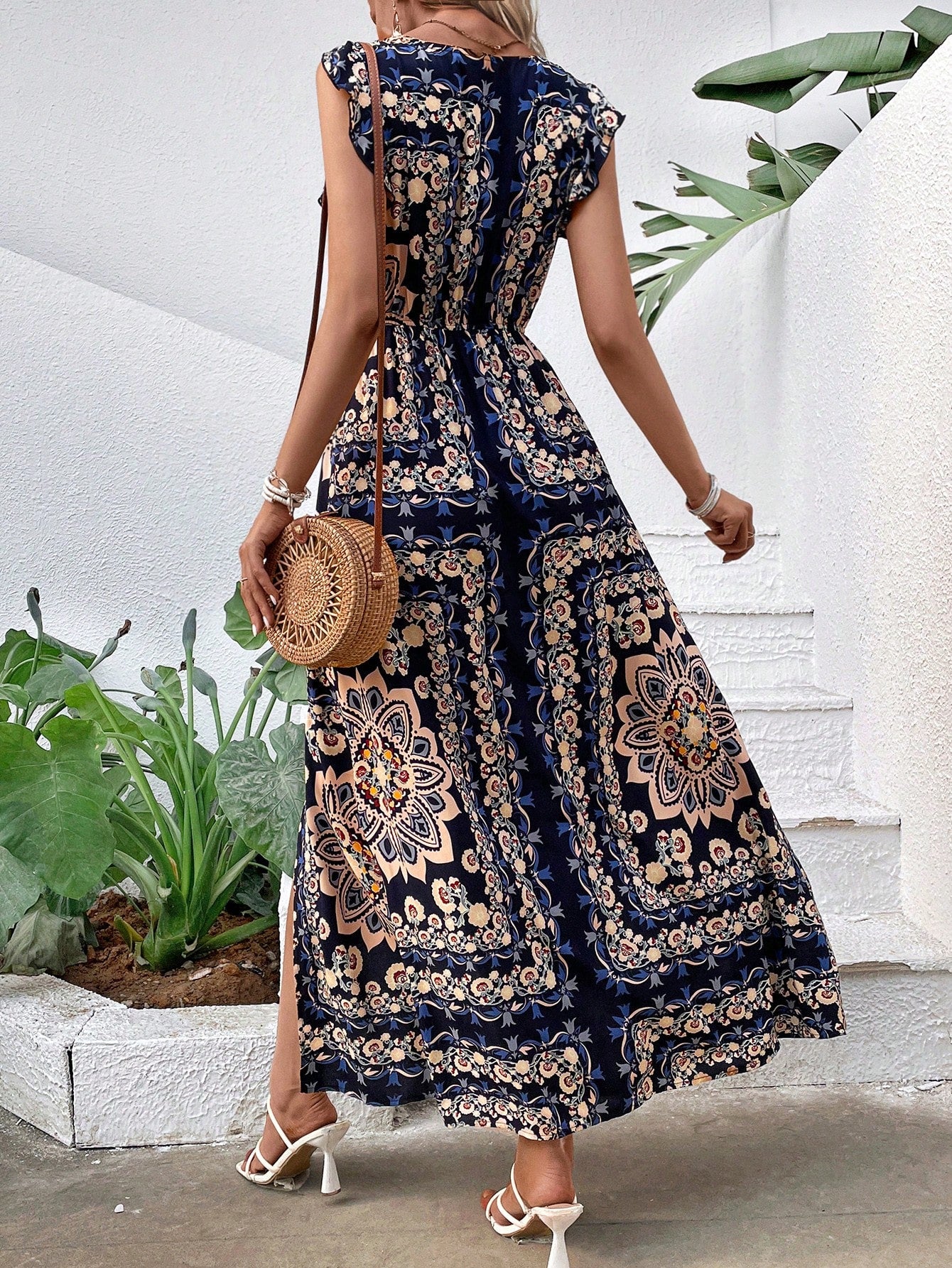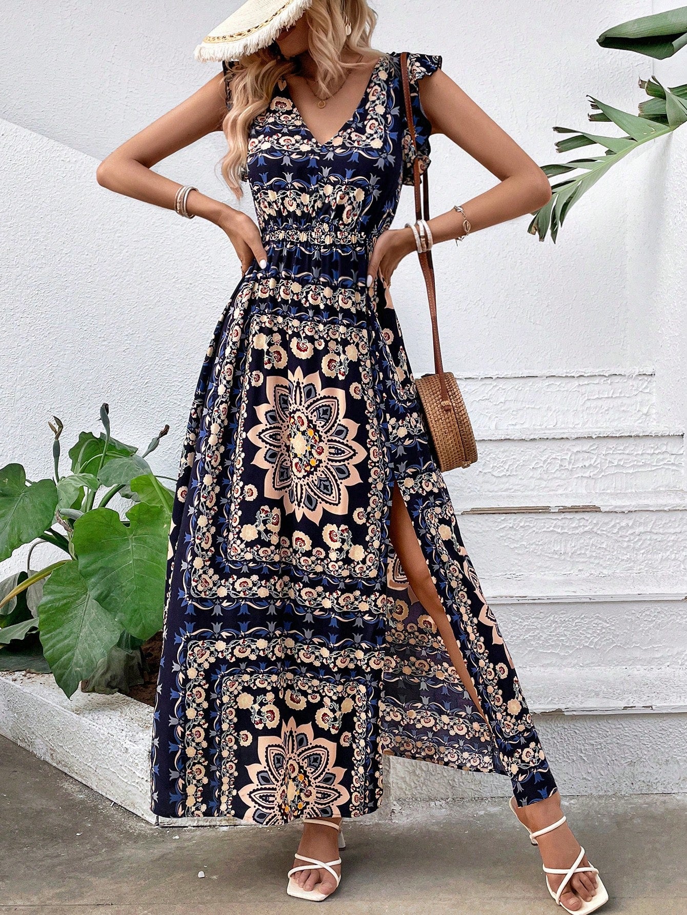 Discover effortless style and playful prints with our Chic V-Neck Tie-Waist Vacation Dress. Featuring a flattering V-neckline and a tie-waist design, this dress is perfect for any vacation. With its chic and versatile look, it's the perfect addition to your wardrobe for both casual outings and special occasions.