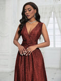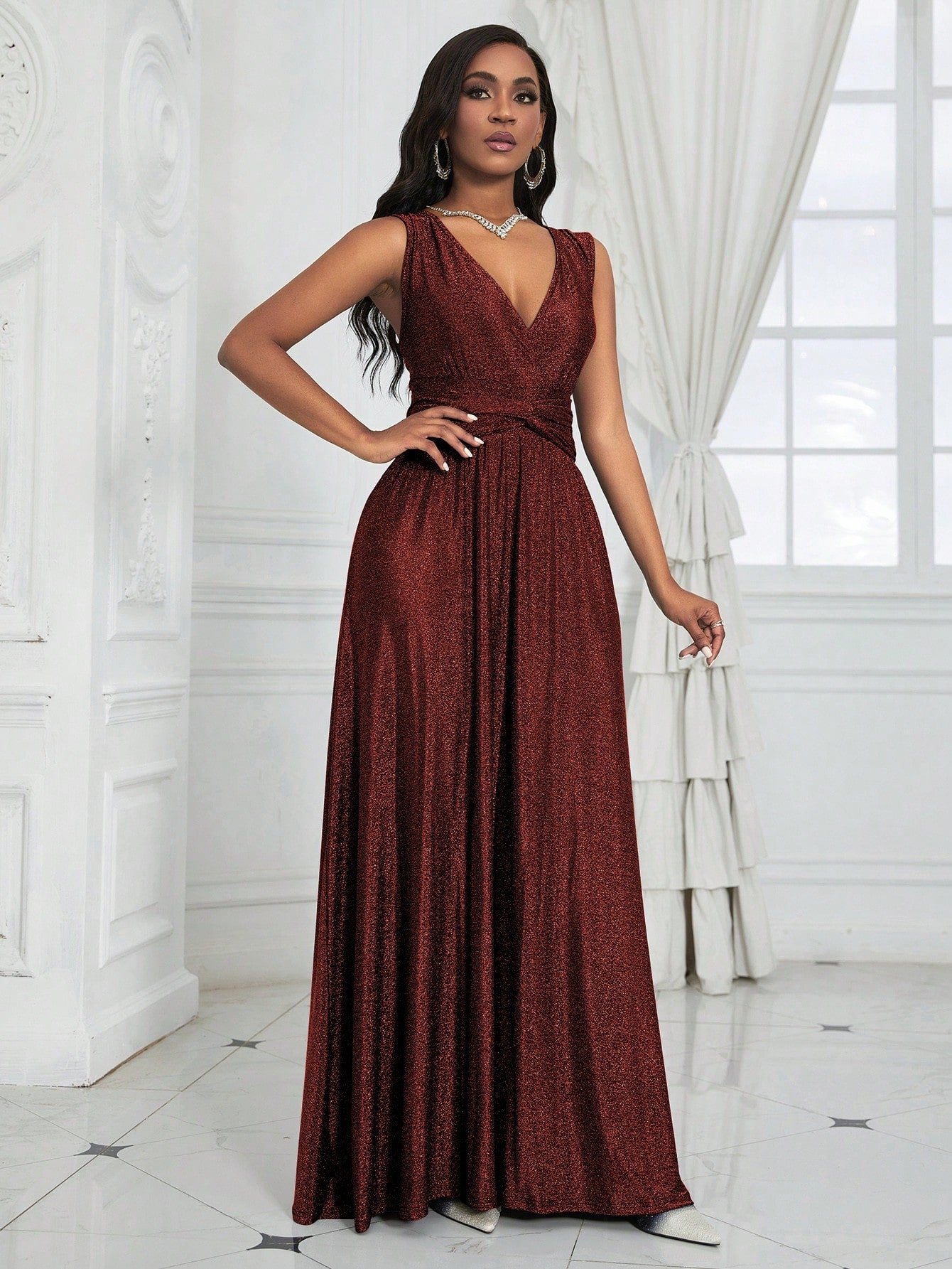 Chic V-Neck Twist Maxi Dress for Effortless New Year Elegance