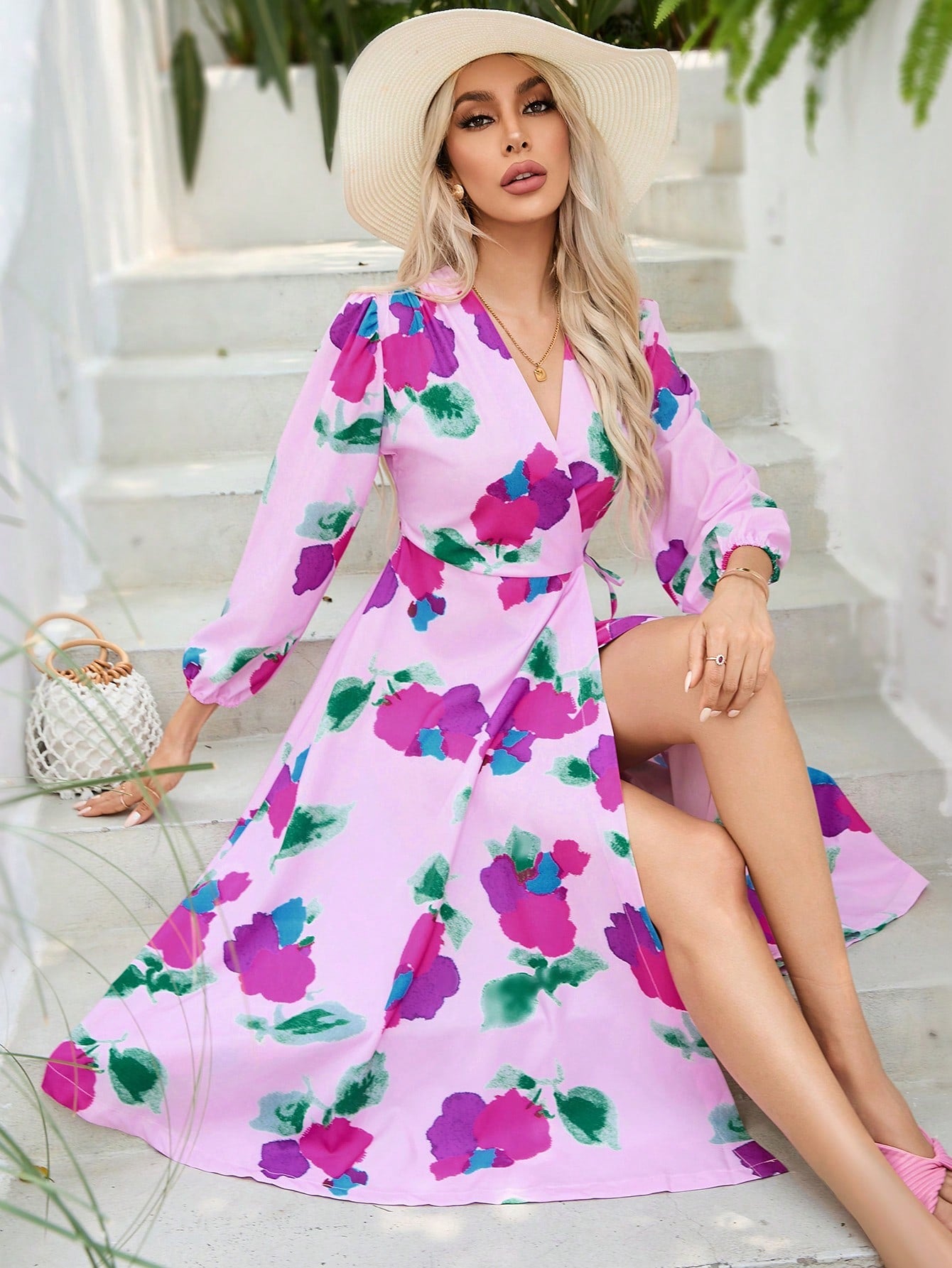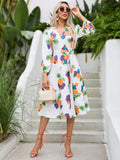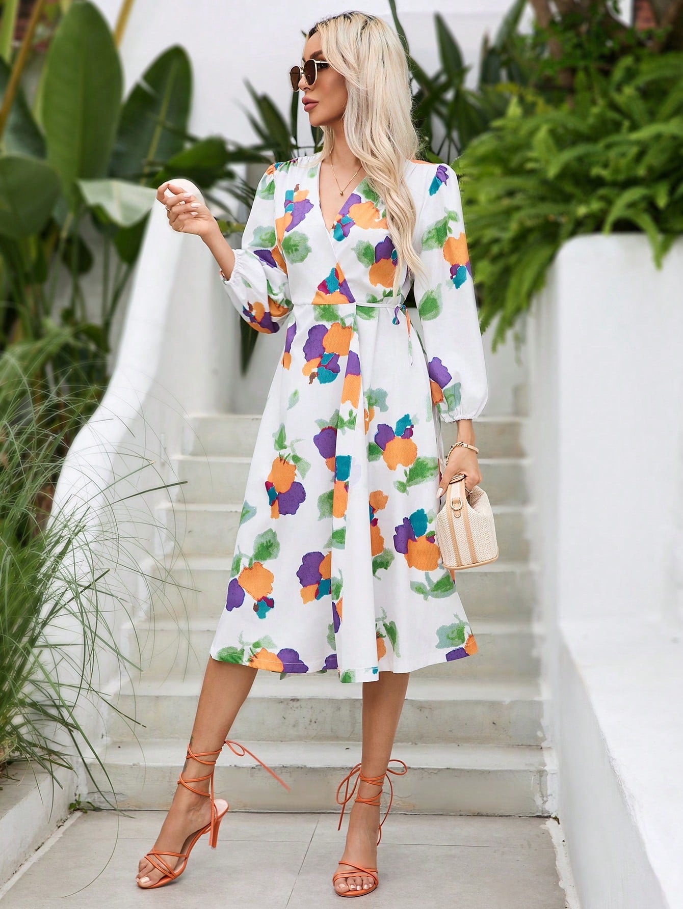 Chic V-Neck Waist-Cinched Printed Dress – Effortless Style for Every Occasion