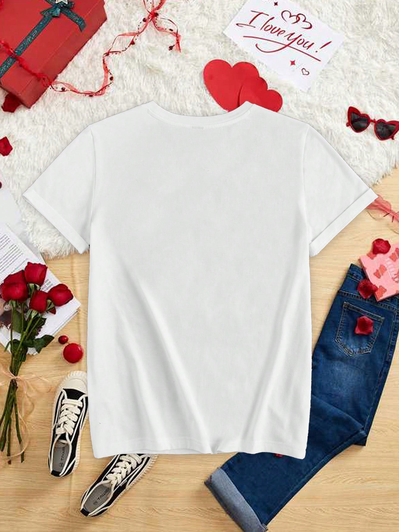 Share some love and style this summer with our Chic Valentine's Heart Slogan Tee! This playful and trendy tee will spice up your wardrobe, perfect for the warm weather. Spread some love and stay stylish with this must-have tee!