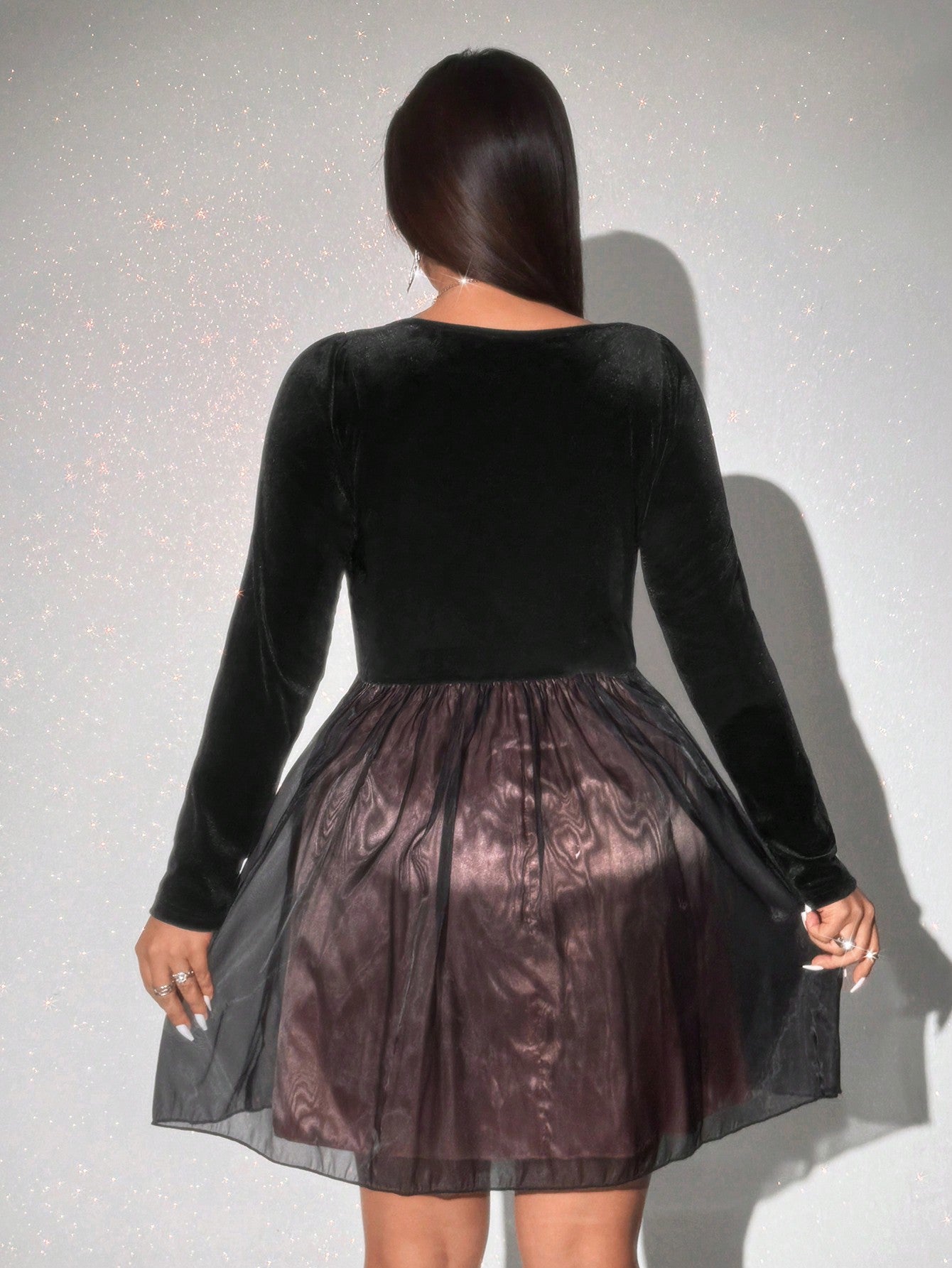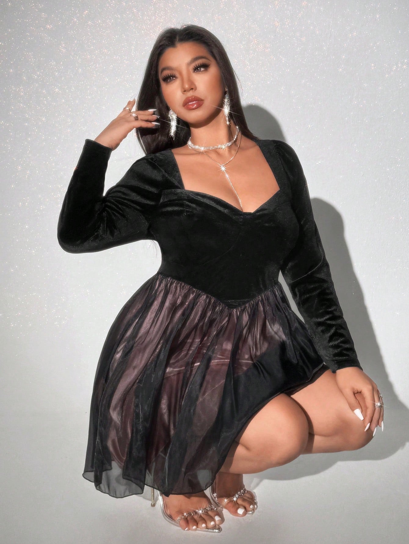 Chic Velvet & Mesh Plus Size Formal Dress - Elegance Redefined
