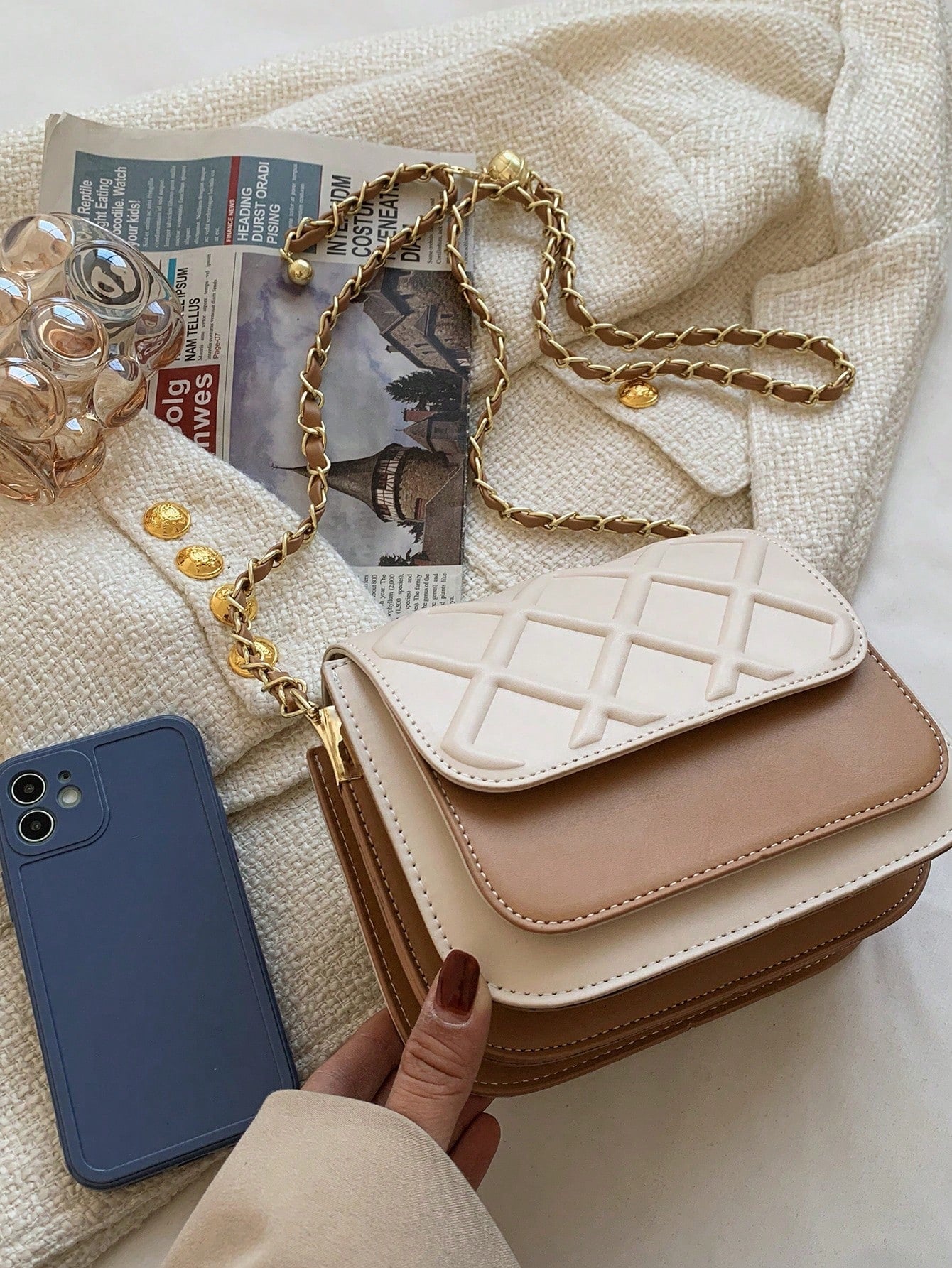 Chic & Versatile Mini Colorblock Quilted Chain Flap Bag – Ideal for Business and Casual Looks