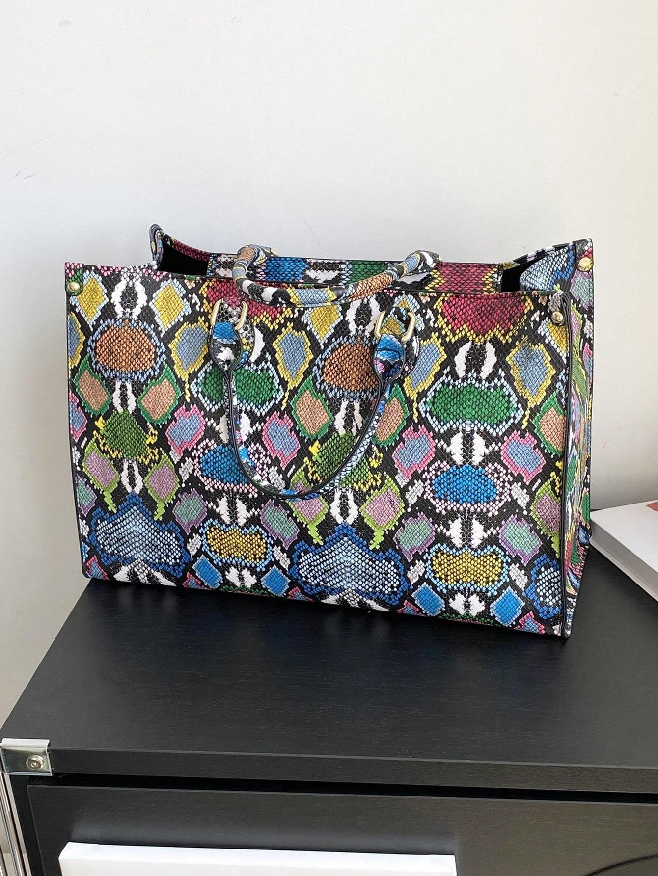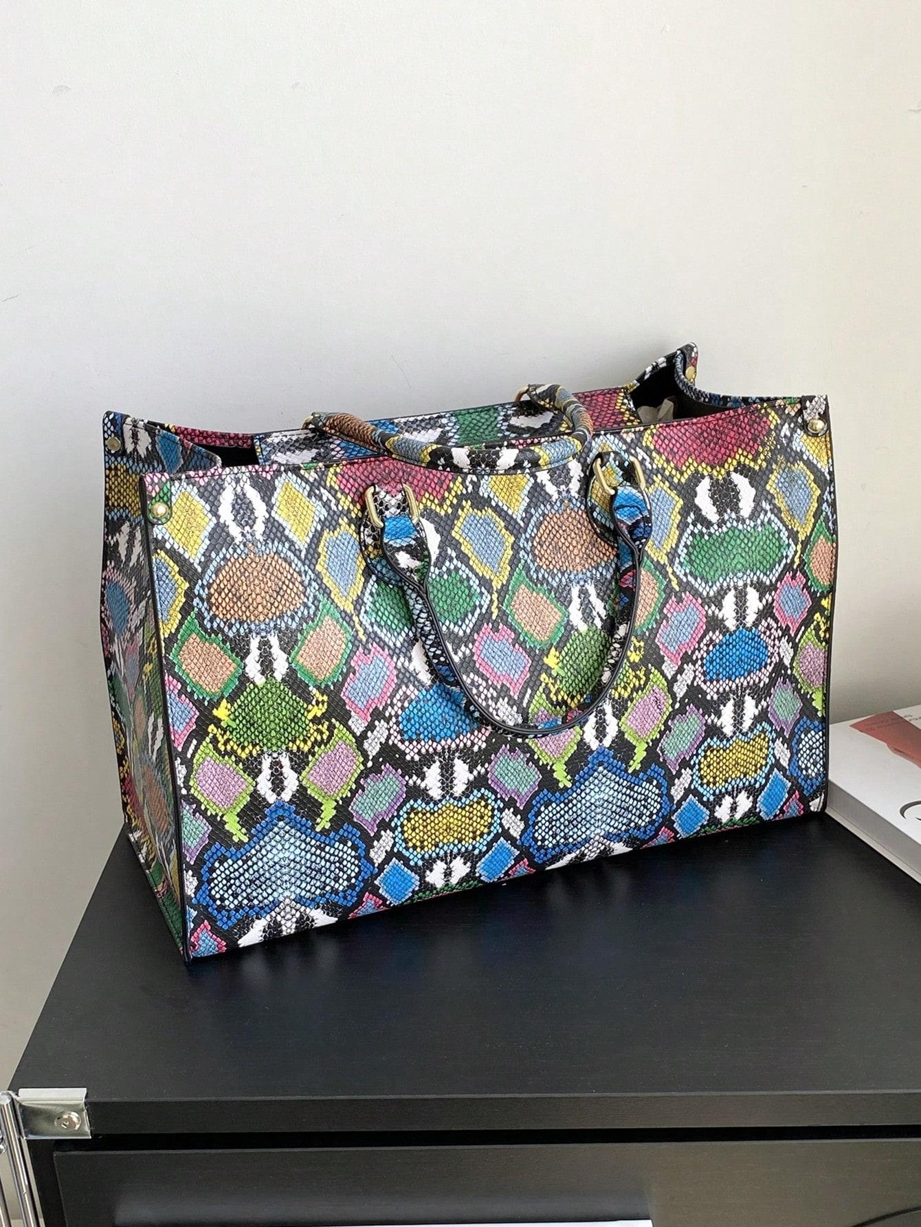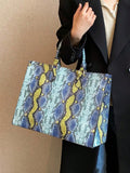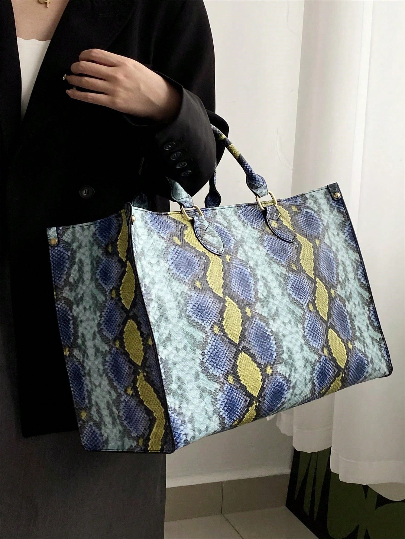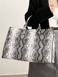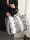 Chic & Versatile Snake Print Oversized Tote Bag for All Seasons