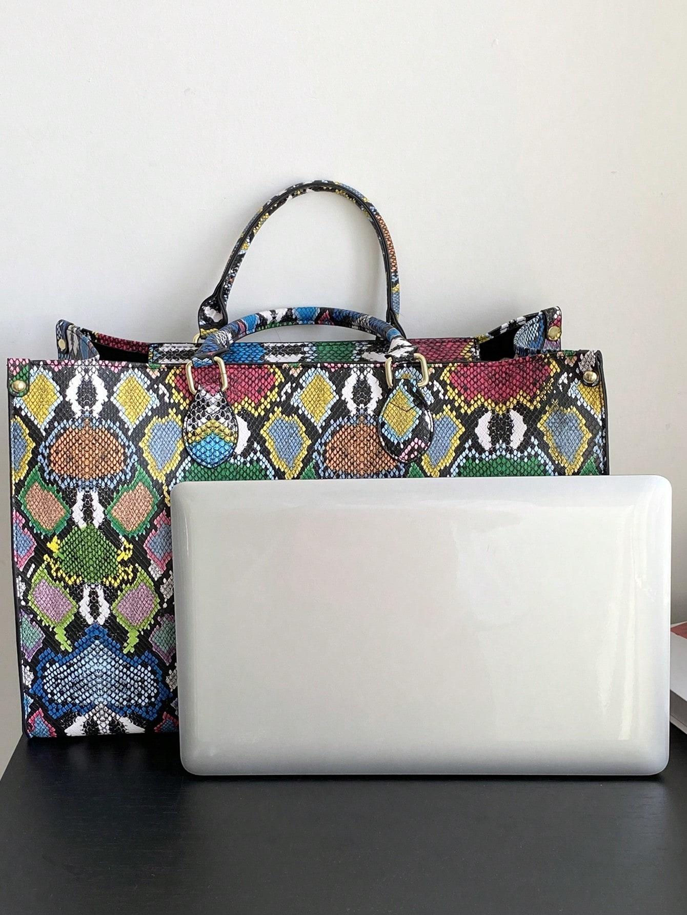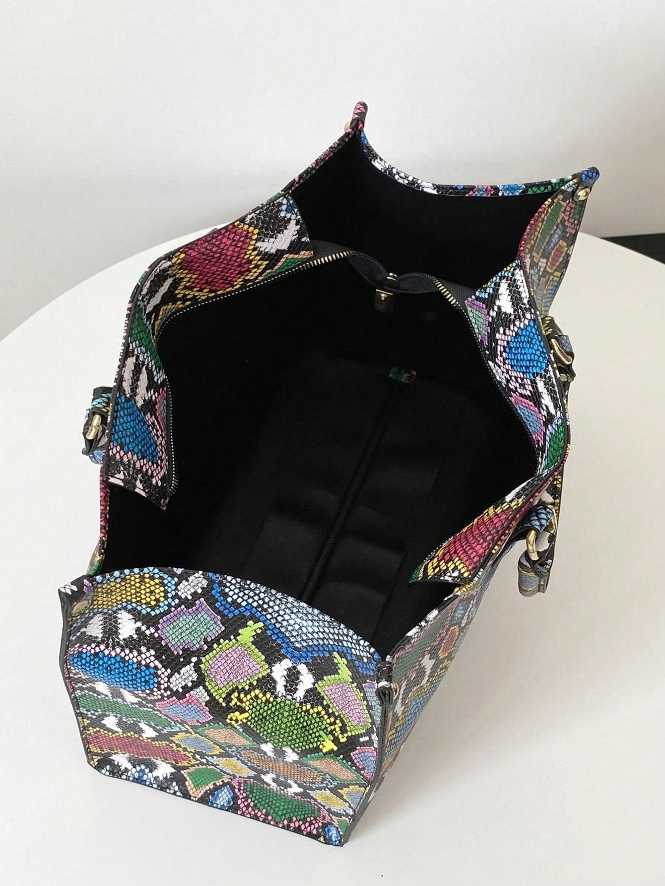 Bag - the perfect accessory for all seasons. Made with high-quality materials, this bag combines style and functionality. Its oversized design allows for ample storage while the snake print adds a touch of elegance. A must-have for any fashion-forward individual."