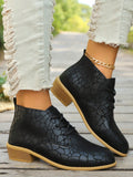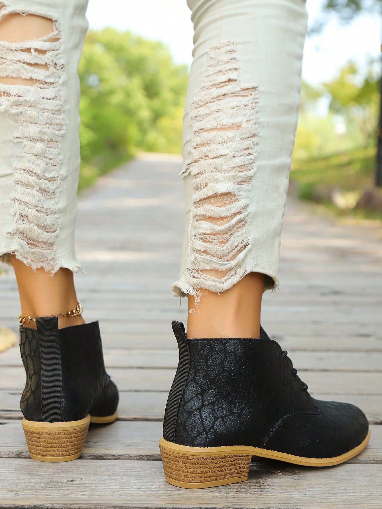 Chic & Versatile Women's Black Low Heel Lace-Up Boots - Perfect for Work & Autumn-Winter Style