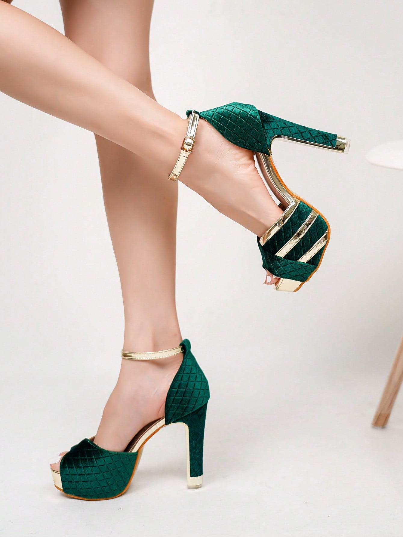 Chic Waterproof Platform Peep-Toe Sandals with High Chunky Heels for Effortless Elegance