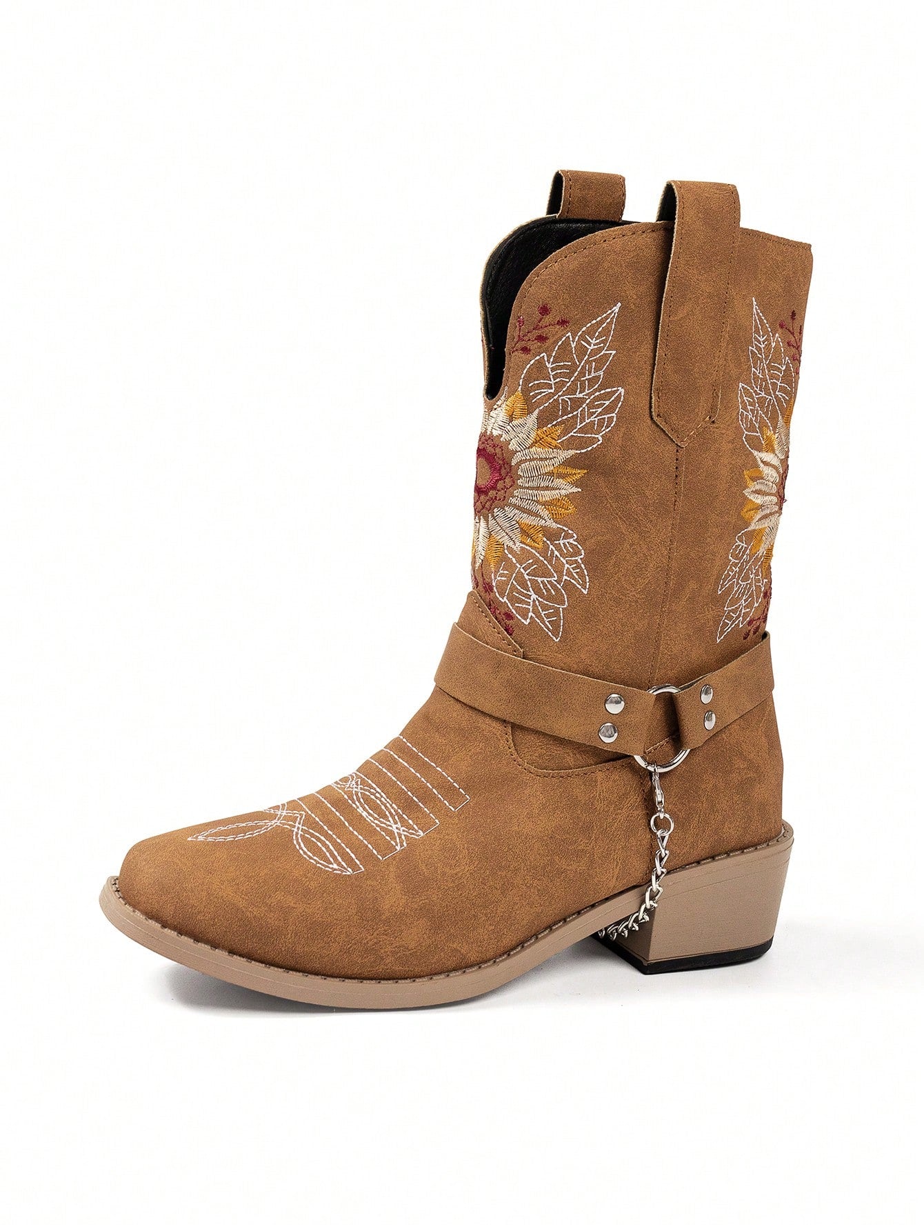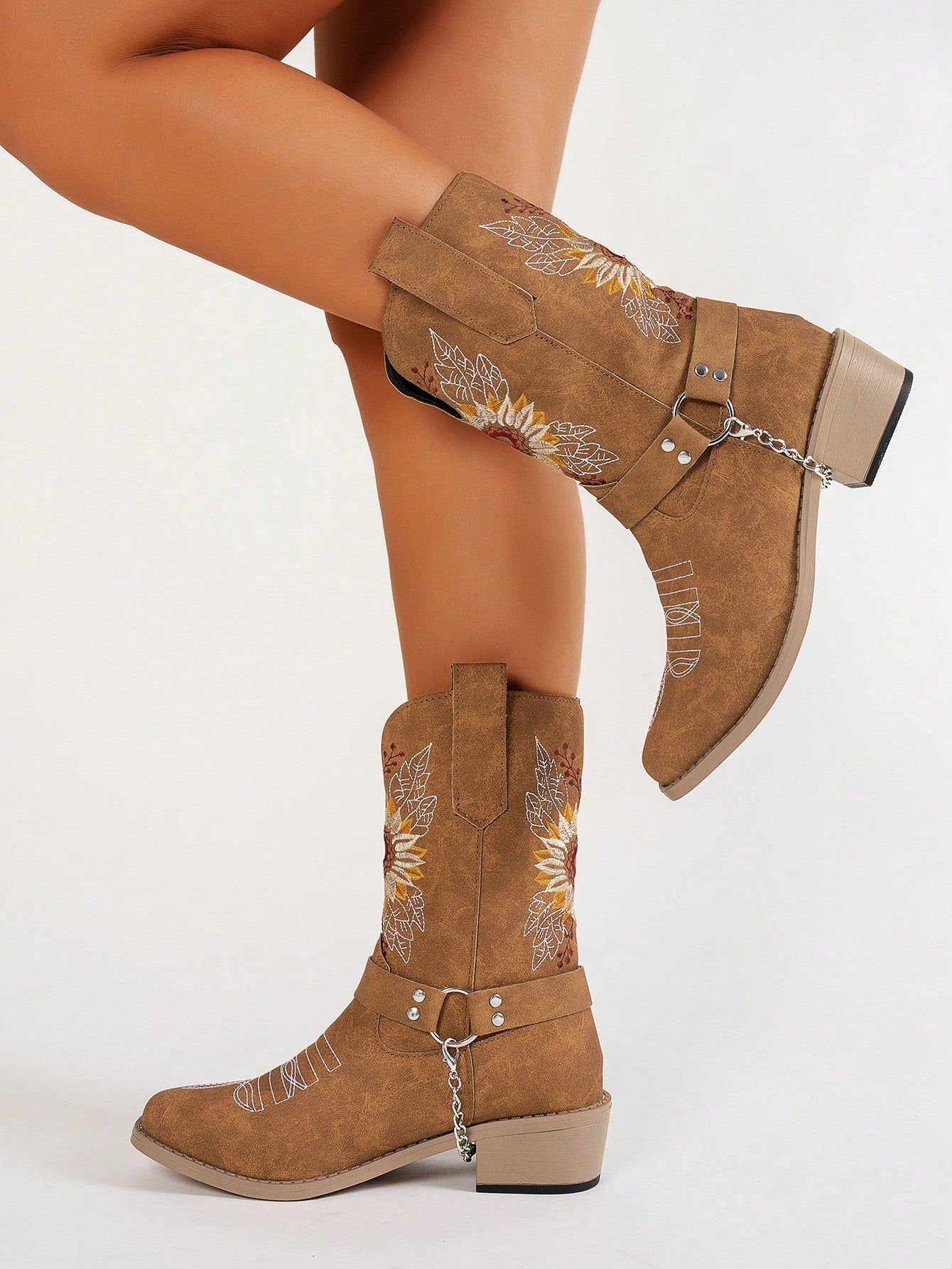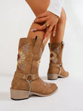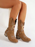 Chic Western Embroidered Cowgirl Boots for Women - Perfect for Autumn & Winter Styling