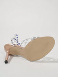 Chic Women's Rhinestone Anklet Stiletto Sandals - High Heel Silver Metallic Cross Tie Design